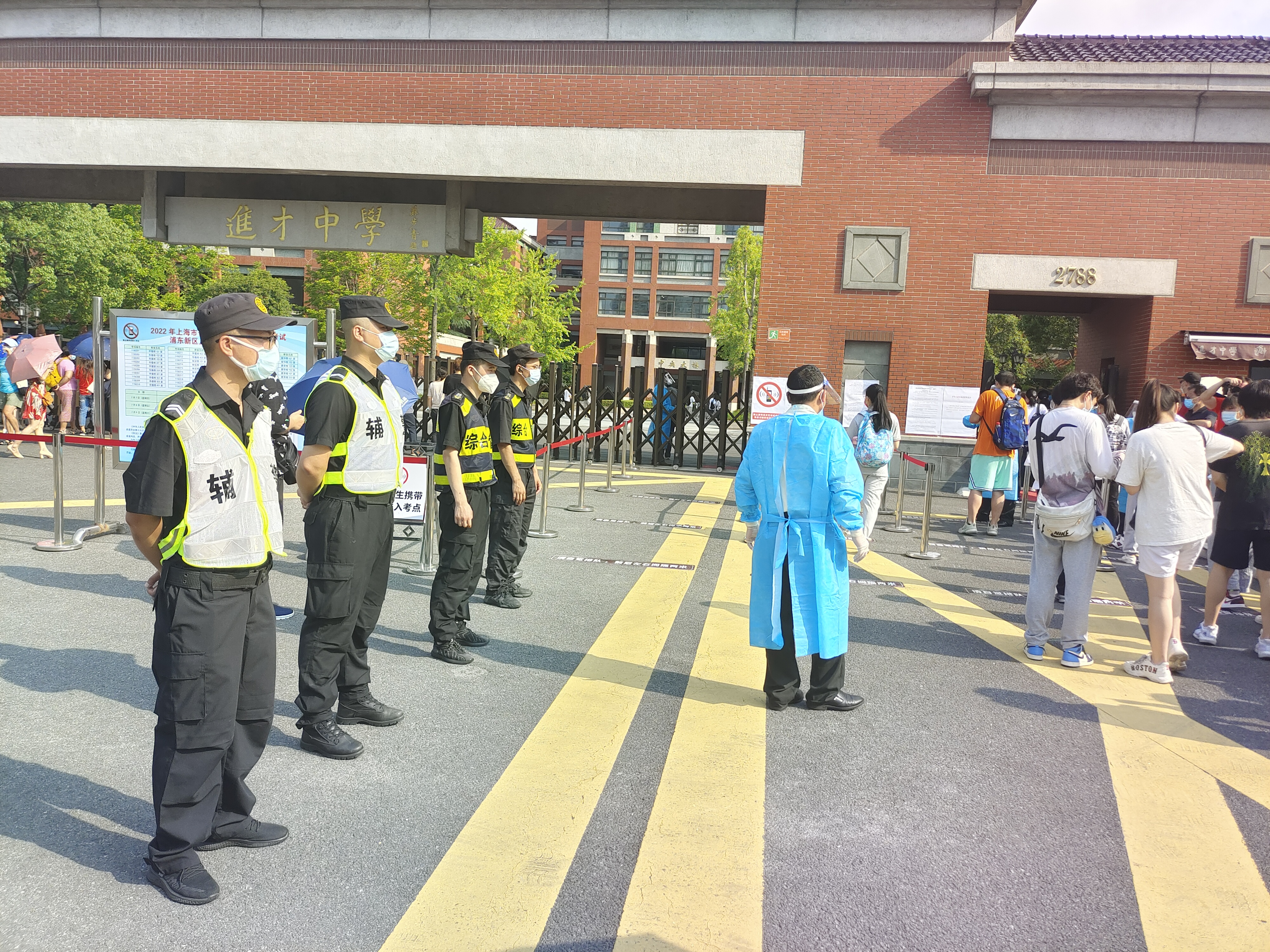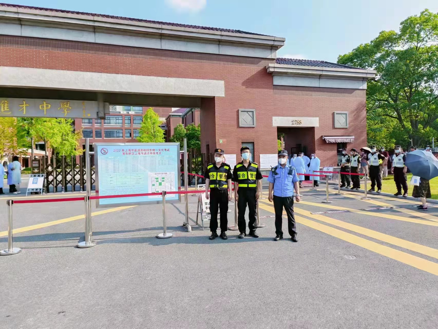 7月7日起,上海市陸續(xù)迎來了2022年普通高校招生全國統(tǒng)一考試和2022年初中學業(yè)水平考試。宗保公司承擔了建平中學、進才中學、周浦中學、吳迅中學、滬東長島中學、楊思高級中學、南匯一中、南匯中學、閔行外國語中學等17個考點的秩序維護任務(wù),配合轄區(qū)公安機關(guān)、校方維持各考點高考和中考秩序。
