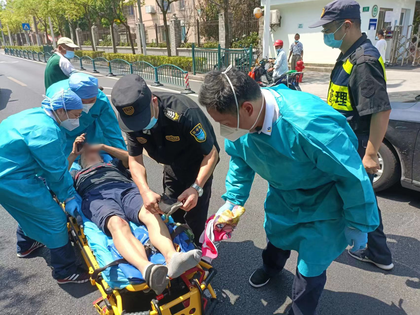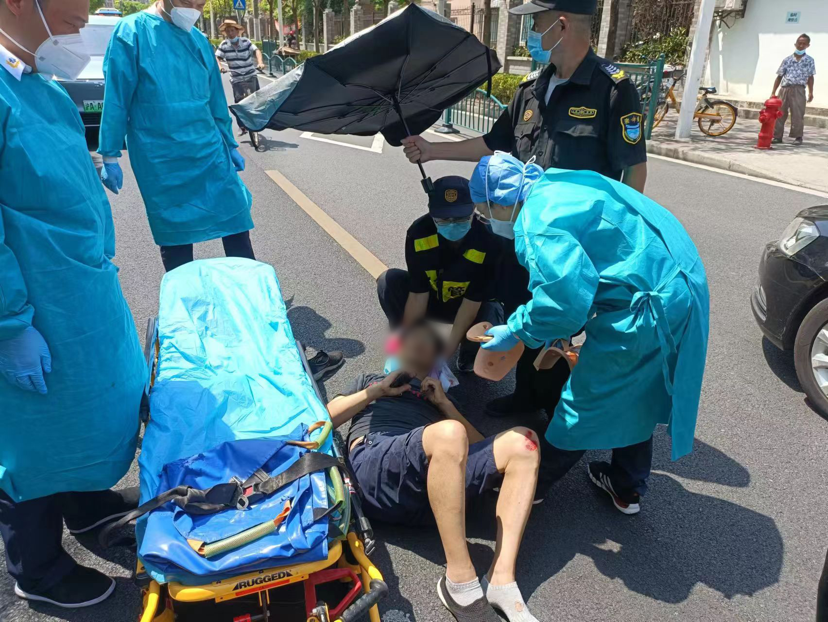 救護(hù)車和交警很快趕到了現(xiàn)場,徐周和周福濤又協(xié)助醫(yī)護(hù)人員將受傷男子抬上救護(hù)車,隨后便回到崗位繼續(xù)巡邏。