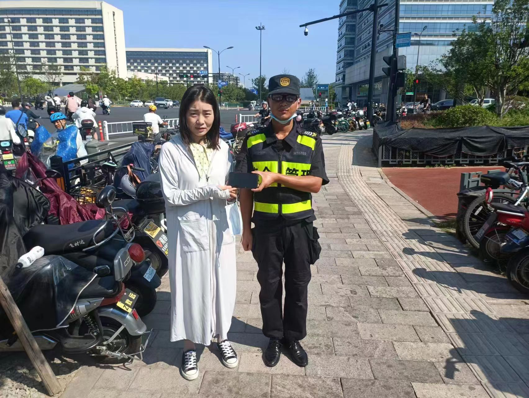 不一會兒,一位身穿白衣的女子急匆匆趕來認(rèn)領(lǐng)手機(jī),龐江濤仔細(xì)核對確認(rèn)女子是失主后,便將手機(jī)歸還給她。女子接過手機(jī),再三向隊(duì)員龐江濤表示感謝。