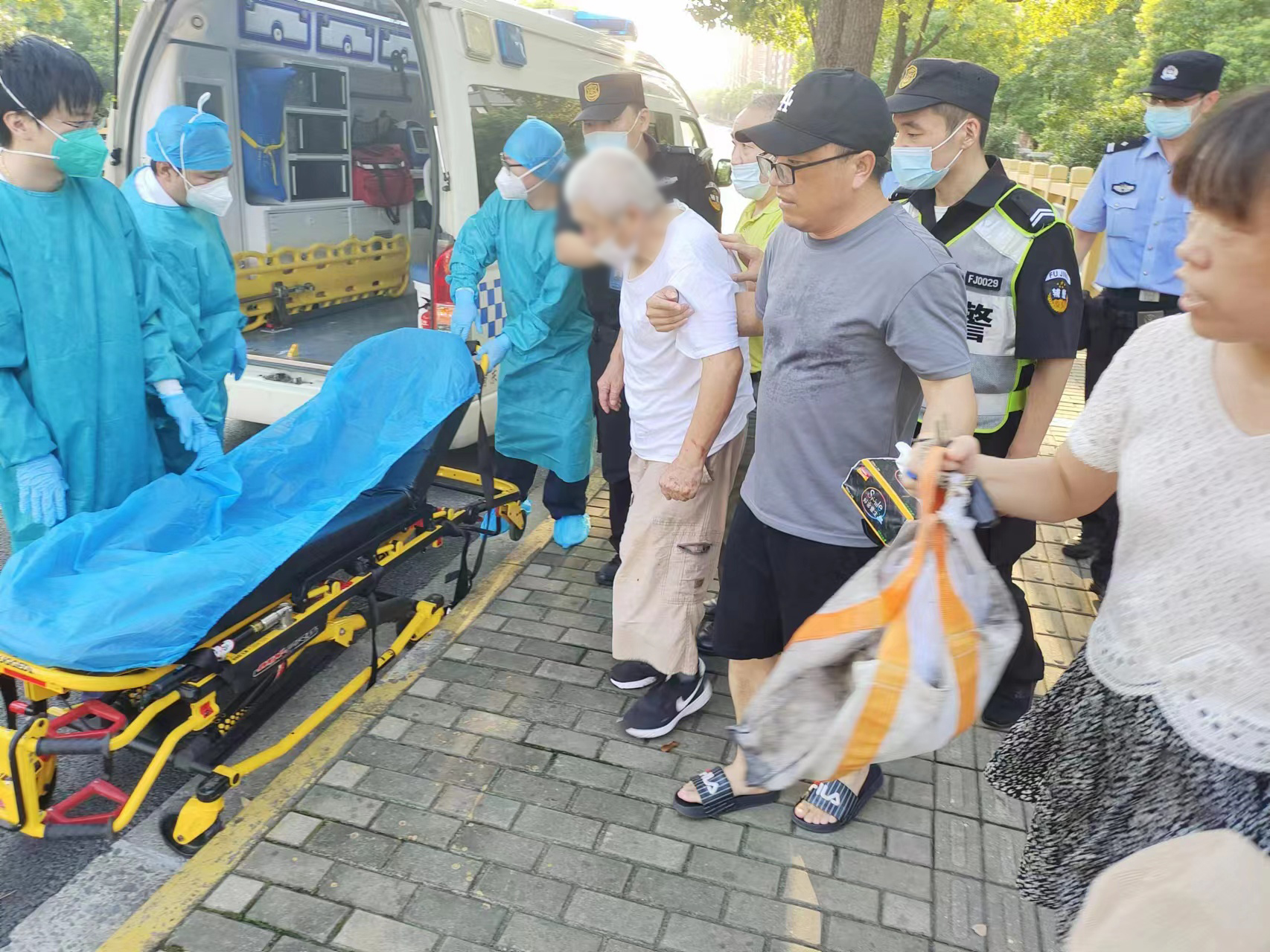 很快,民警和120救護(hù)車趕到了現(xiàn)場,三人又協(xié)助醫(yī)護(hù)人員將受傷老人抬上救護(hù)車,由救護(hù)車送往醫(yī)院治療。
