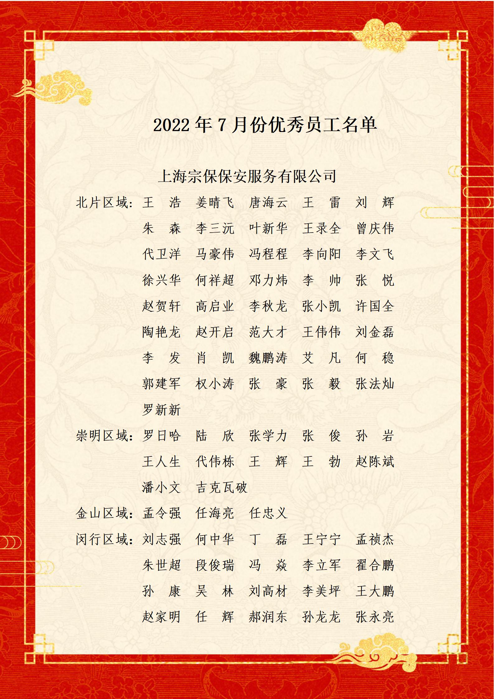 7月份,公司廣大員工根據(jù)甲方的任務部署,按照公司的工作要求,不懼風險、勇毅前行,頂著高溫、冒著酷暑,全力配合甲方持續(xù)做好疫情防控工作,協(xié)助完成相關高考中考考點秩序維護,助力開展好城市管理、夏季治安值守巡邏等工作。期間,涌現(xiàn)出了一批盡心履責、崗位建功、拾金不昧、助人為樂的優(yōu)秀員工和先進典型。