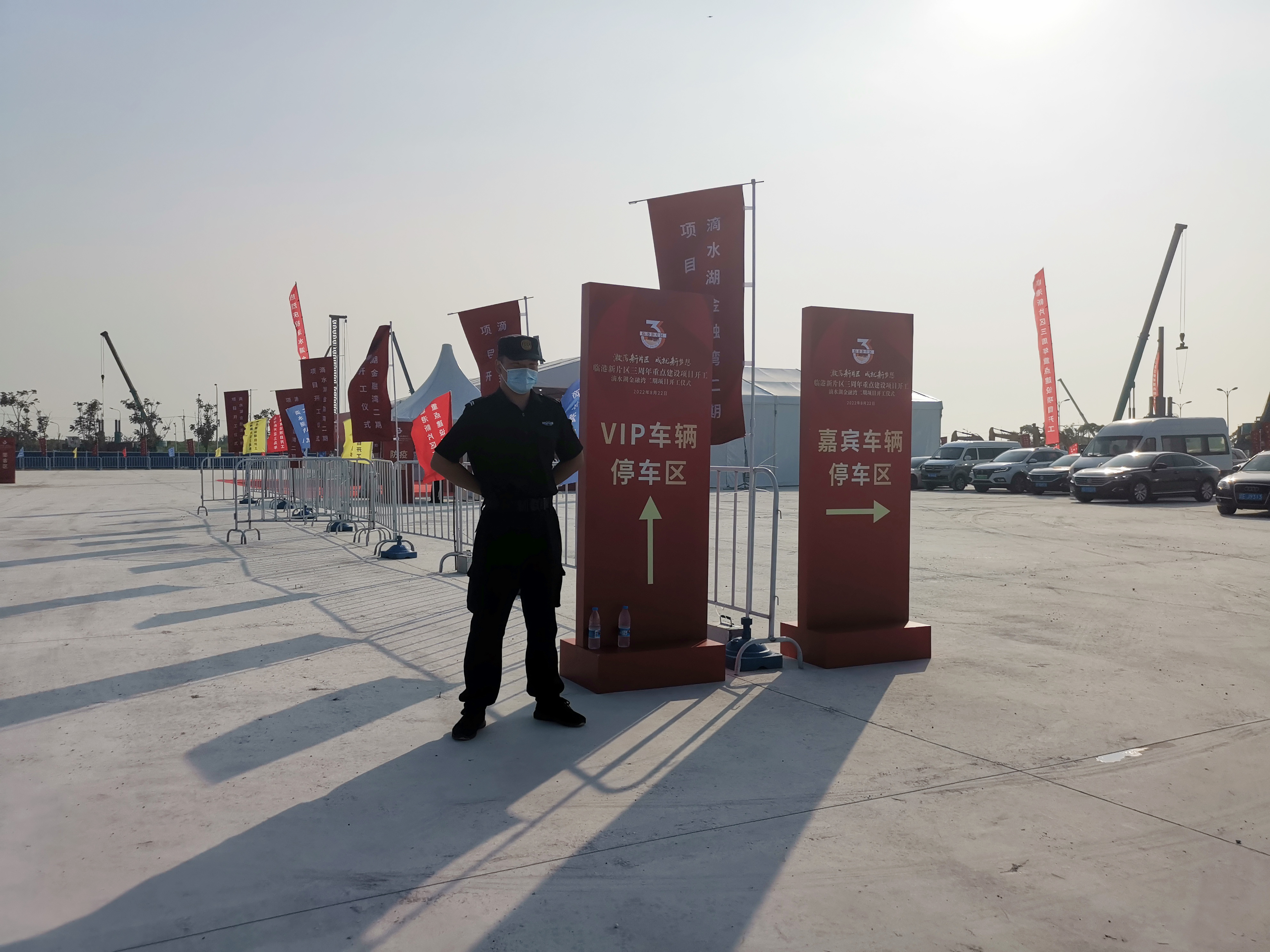 在開工儀式現(xiàn)場,宗保公司參與值勤的隊(duì)員們頂著驕陽烈日,冒著酷暑高溫,聽從指揮,熱情服務(wù),全力協(xié)助查驗(yàn)參會(huì)人員健康碼、核酸檢測(cè)陰性報(bào)告,有序引導(dǎo)參會(huì)人員入場,做好車輛指引疏導(dǎo),順利地完成了秩序保障任務(wù)。