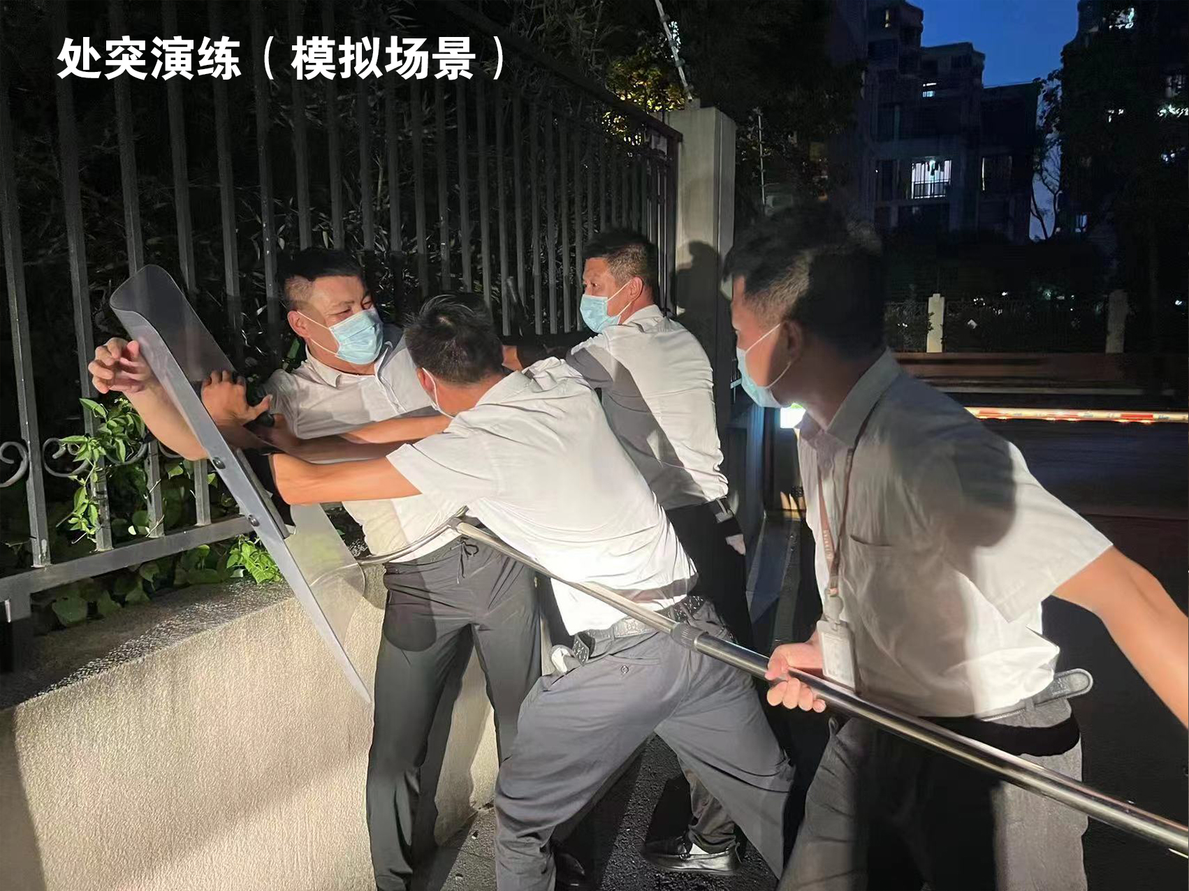 針對(duì)可能發(fā)生的突發(fā)事件,按性質(zhì)分類別依場(chǎng)景,分“情況顯示、先期處置、協(xié)同處置、組織撤收”四個(gè)步驟,采取分解動(dòng)作教學(xué)、裝備器材使用要領(lǐng)講解和現(xiàn)場(chǎng)處置策略演示等方式,對(duì)公司參訓(xùn)保安員進(jìn)行模擬實(shí)戰(zhàn)化專業(yè)訓(xùn)練。