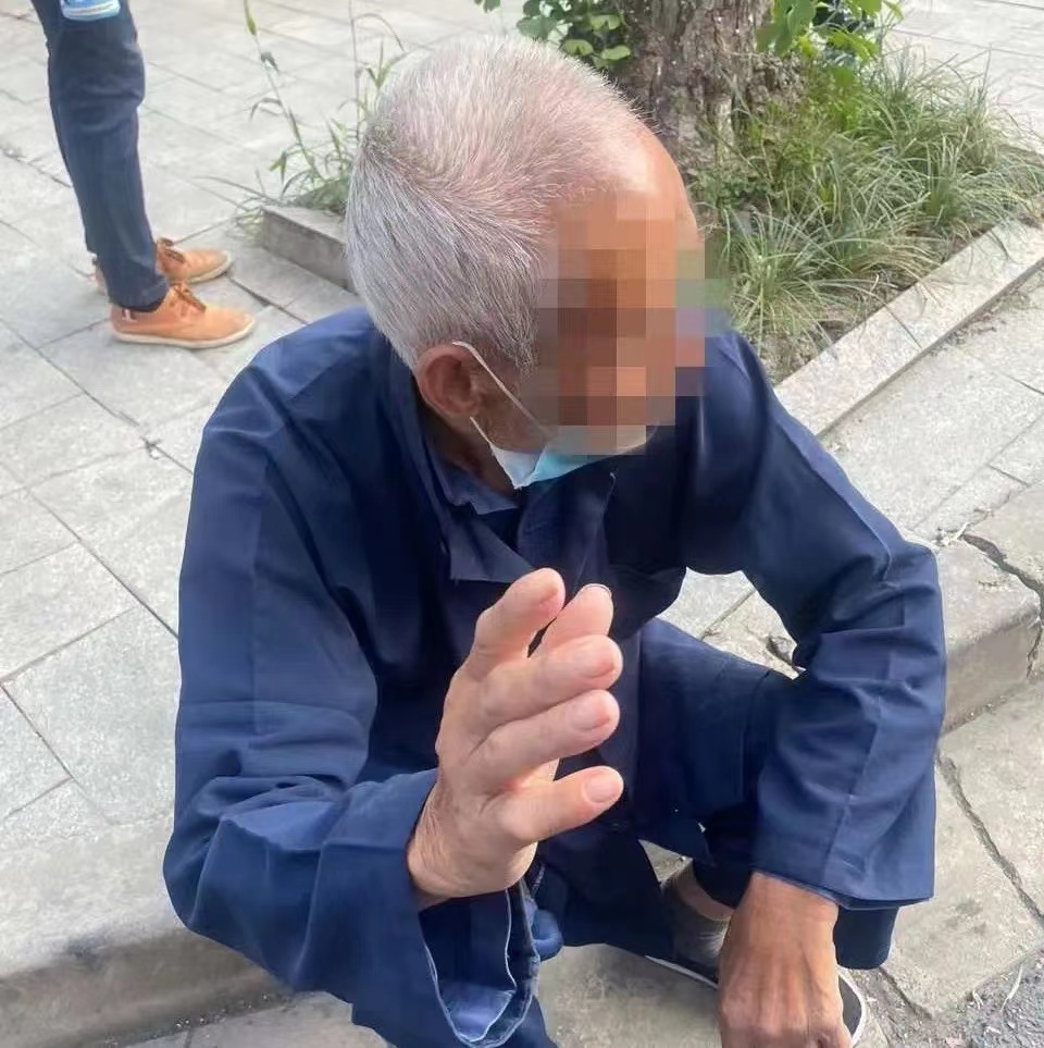 原來,大爺走路時(shí)不慎摔了一跤,一時(shí)站不起來。靳龍龍連忙查看大爺傷勢如何,所幸腿部只有一點(diǎn)點(diǎn)擦傷。隊(duì)員馮孝峰是良渚本地人,經(jīng)過方言一番溝通,了解到大爺姓金,今年82歲,家就住在不遠(yuǎn)處的某小區(qū)。