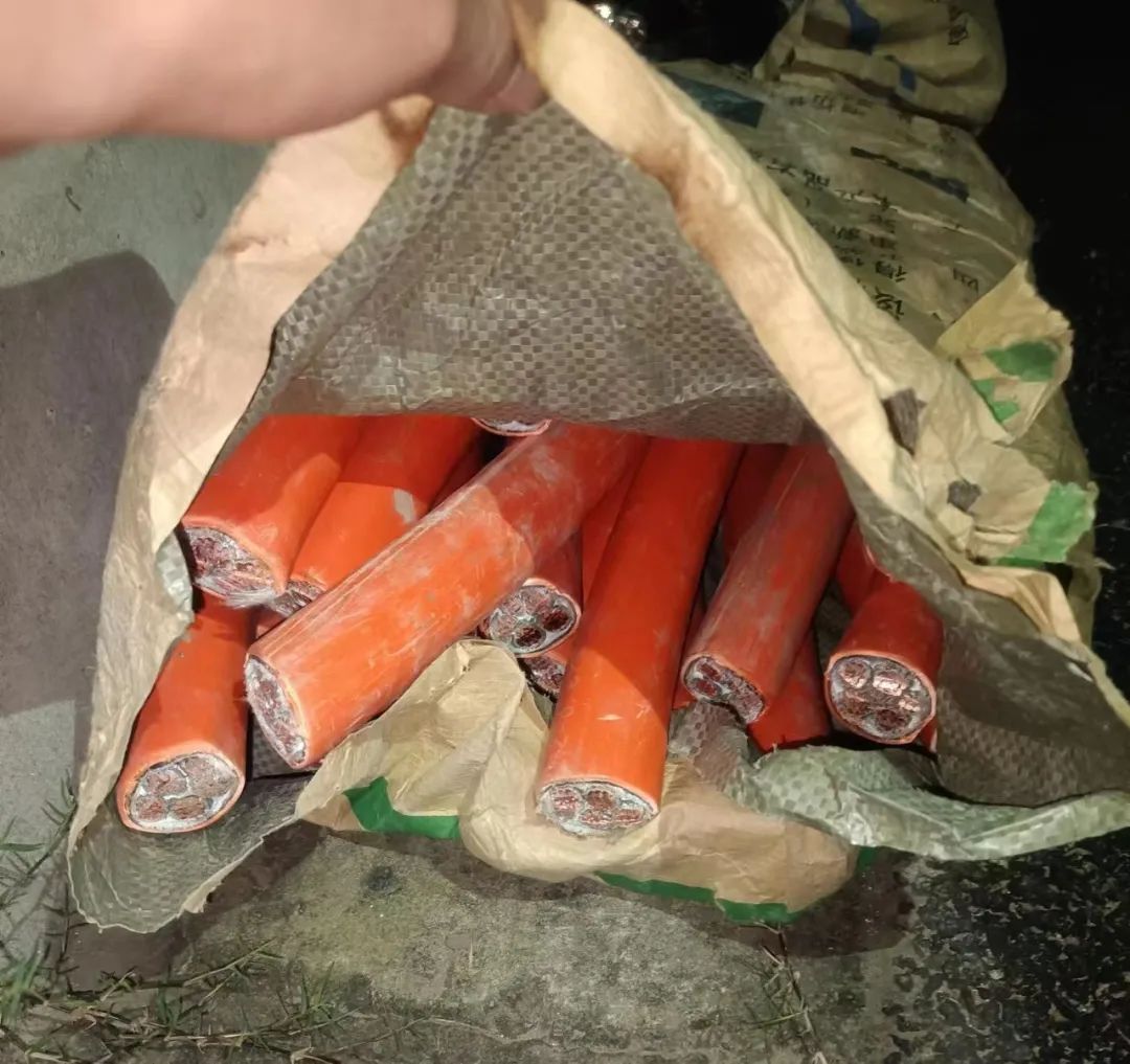 龔永剛和劉潤攔下該男子,打開袋子發(fā)現(xiàn)里面是20多根新剪斷的電纜,正當(dāng)兩人準(zhǔn)備詢問時(shí),男子丟下袋子撒腿就跑。
