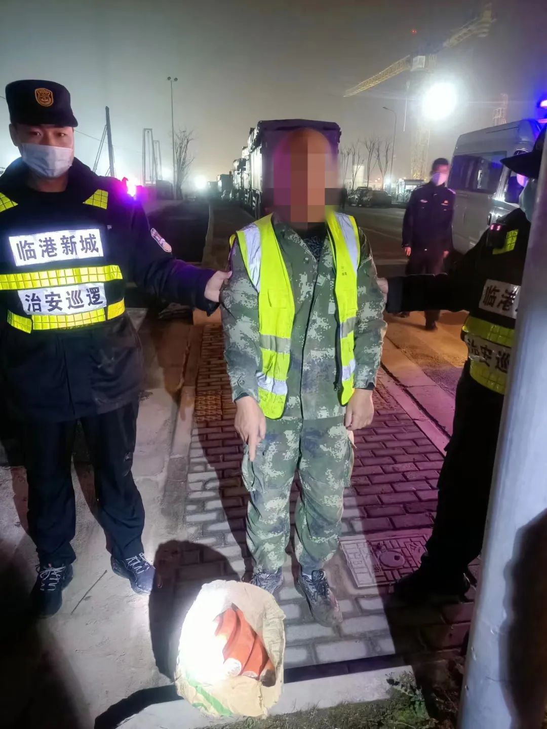 12月9日,宗保公司駐臨港派出所輔助項(xiàng)目員工值勤巡邏抓獲盜竊電纜嫌疑人。