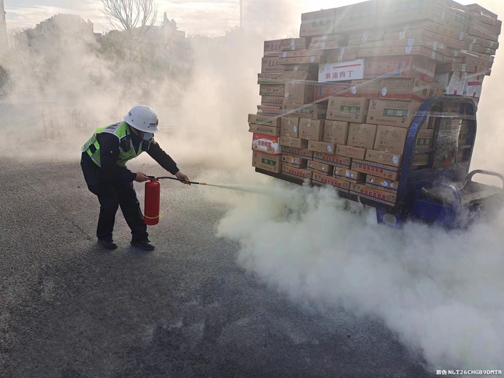 1月9日,浙江民泰公司駐杭州市余杭區(qū)良渚物流項目員工幫助撲滅冒煙起火的三輪車。
