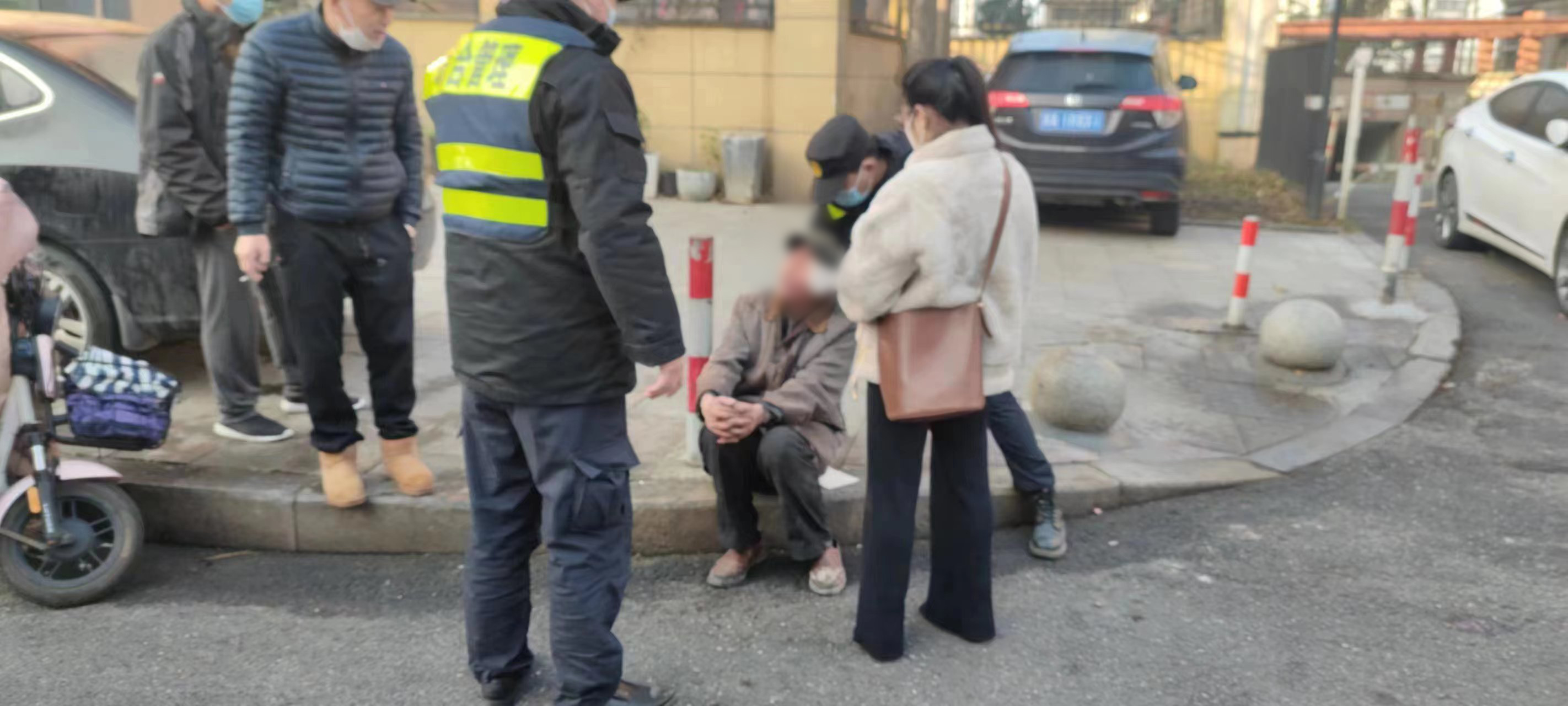 當日8:10,公司員工顏晨龍、曹翔翔和劉寒在五常街道豐嶺路浙地人家北側巡邏時,發(fā)現一老人蹲在地上,頭上流著血,就急忙上前詢問。