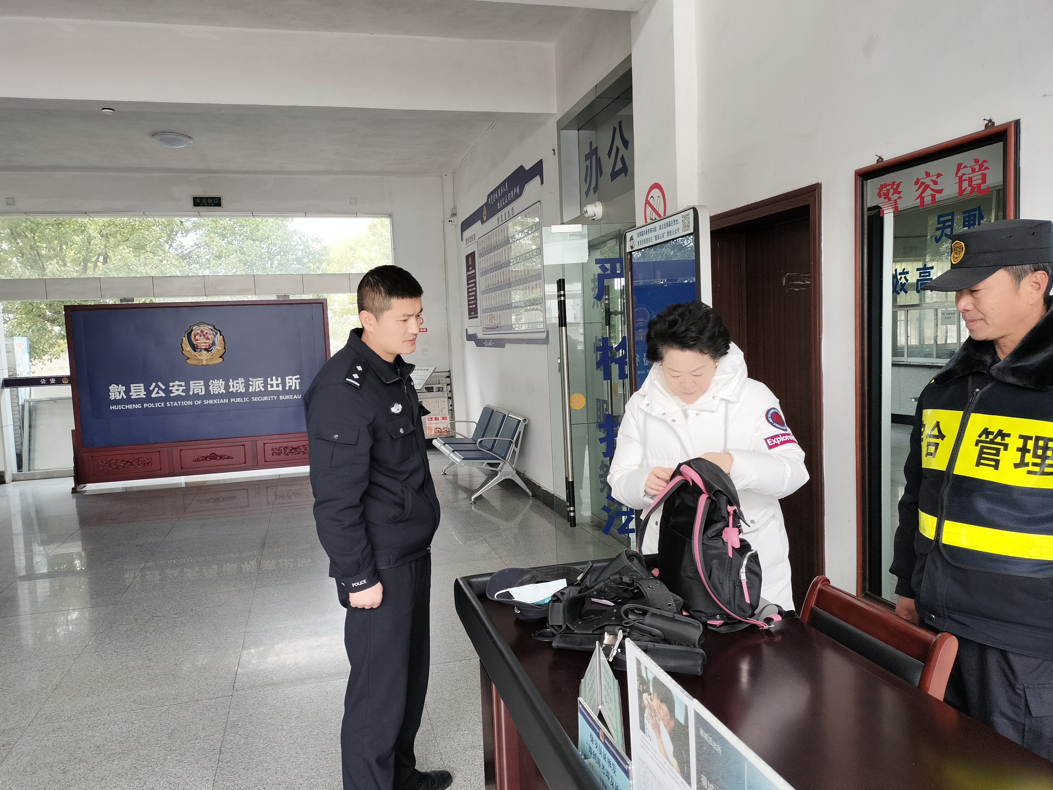 當日11:00,宗保公司歙縣項目員工武漢臣巡邏至徽州古城徽園門口時,撿到一個挎包,內有1300元現金、身份證、銀行卡等物品??紤]到重要物品丟失,失主一定很焦急,武漢臣便將挎包交給派出所民警幫尋失主。