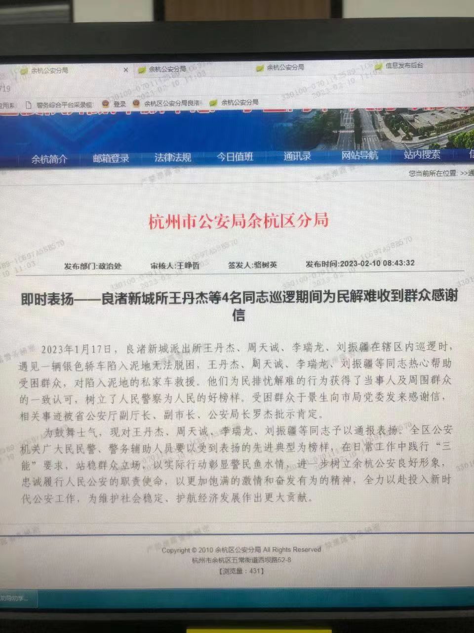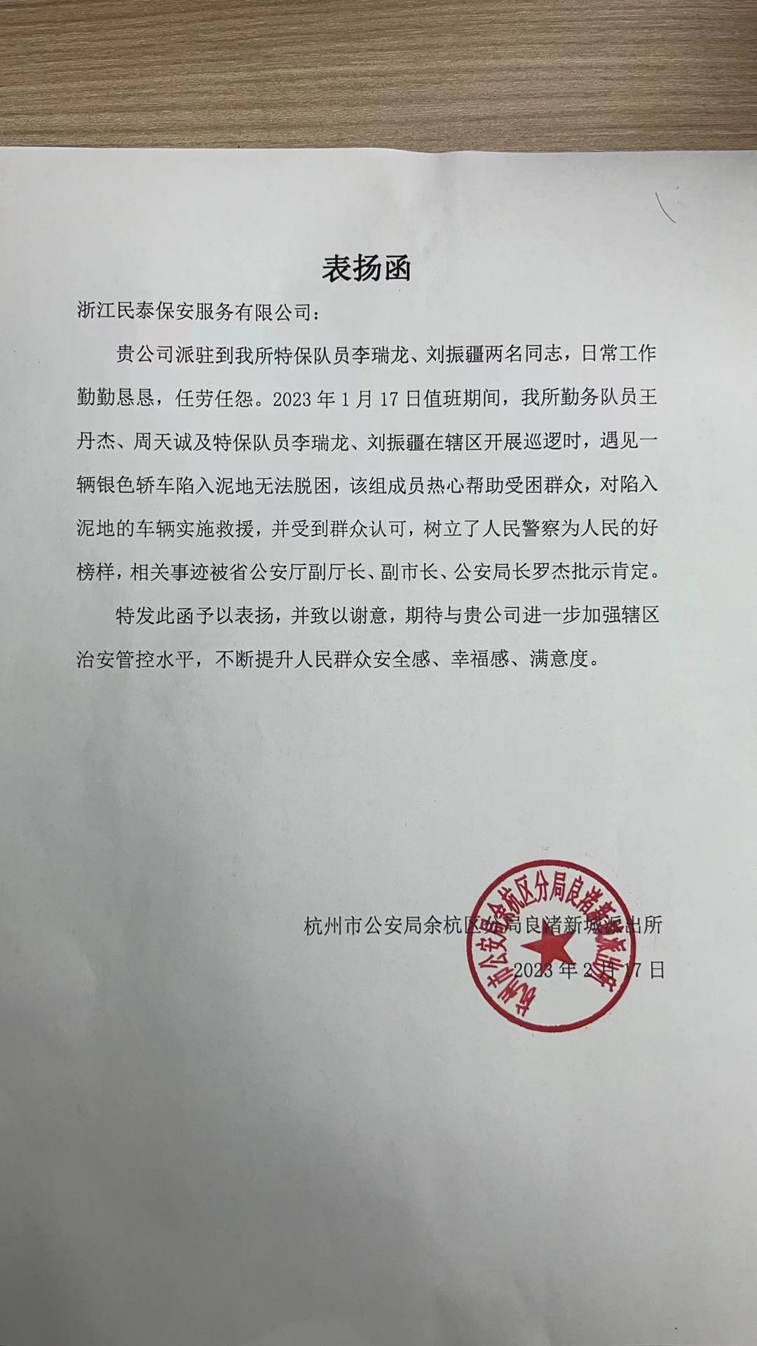 看著脫困的車(chē)子,于師傅十分感激,激動(dòng)地說(shuō):“真是太感謝你們了,要不是你們幫忙,我朋友回老家可能要錯(cuò)過(guò)車(chē)子了?!笔潞?,民泰員工熱心幫助受困群眾的行為受到了杭州市公安局余杭區(qū)分局的通報(bào)表?yè)P(yáng)。