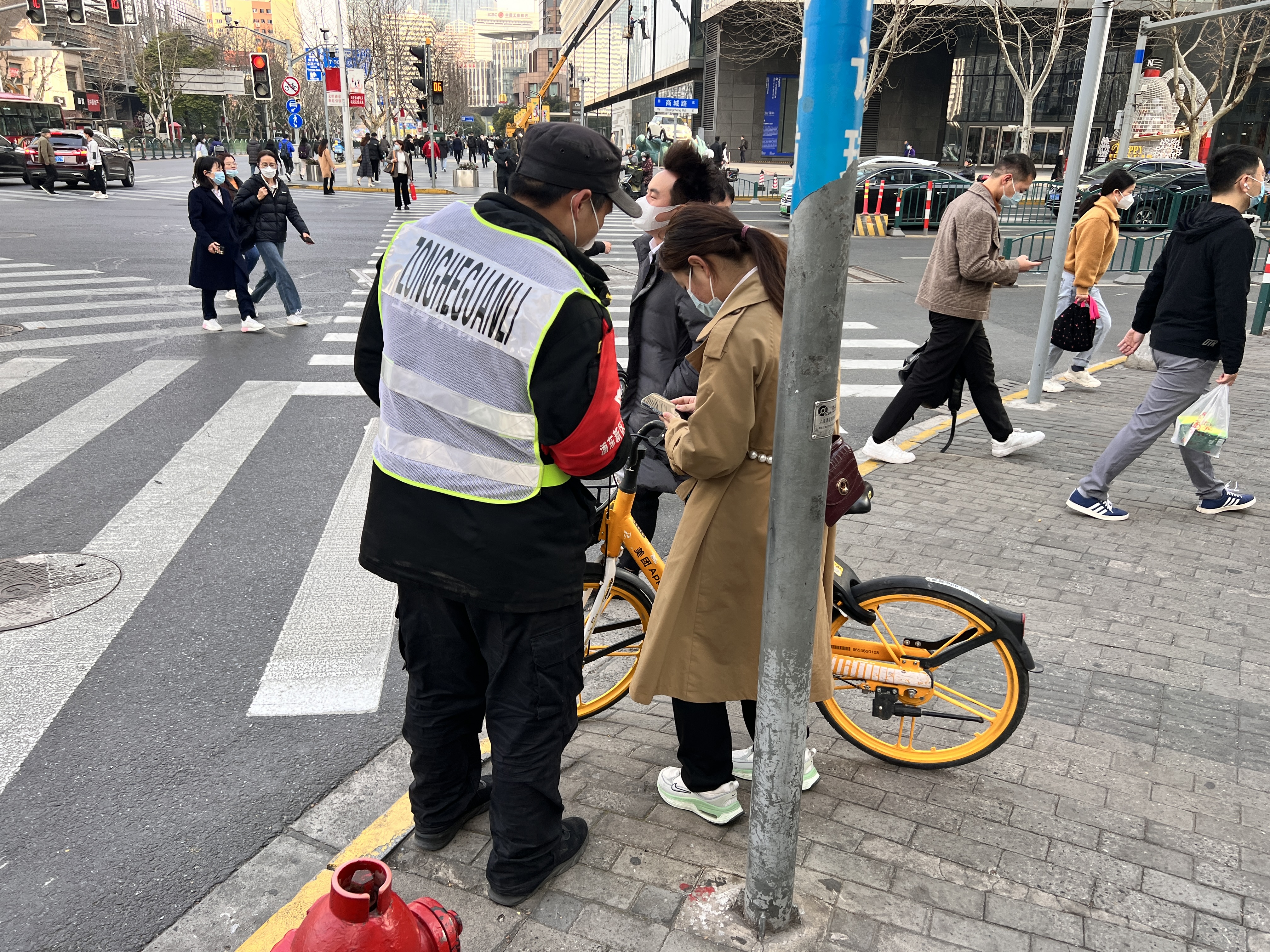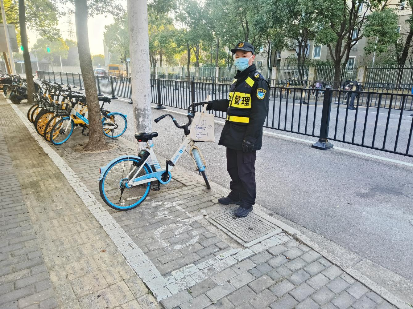 當(dāng)天9:00,公司員工梁奇巡邏至高行鎮(zhèn)秋嵐路蘭谷路交叉口附近時(shí),發(fā)現(xiàn)一輛共享單車的把手上掛著一個(gè)白色手提袋,而周圍沒有人。