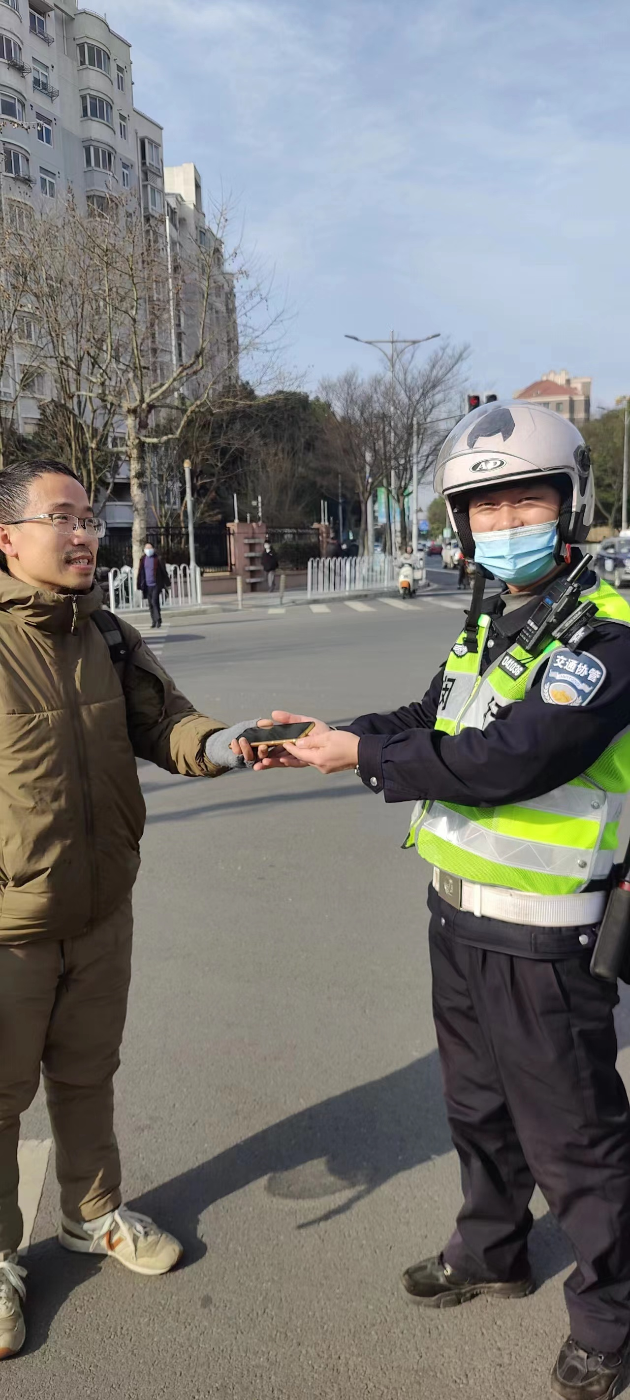 過了幾分鐘,一男子打來電話尋找手機(jī)。顧俊初步了解情況后,與男子約好碰面的地方。16:20左右,一位身穿工作服的男子來認(rèn)領(lǐng)手機(jī)。顧俊核實(shí)后,便將手機(jī)交還給男子,男子當(dāng)面連連向顧俊表示感謝。