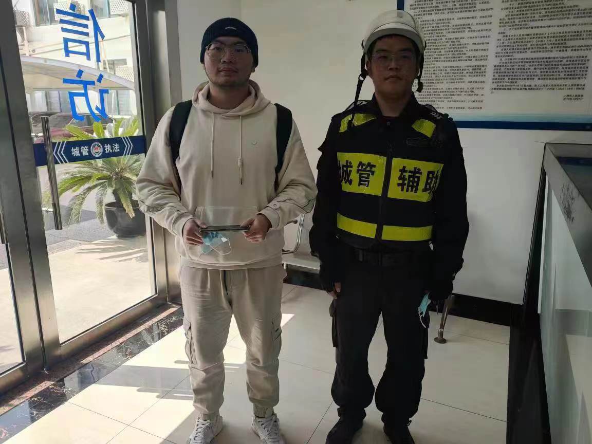 約10:30,一位自稱是失主、從別人處獲知手機(jī)信息的男子,來到城管中隊(duì)認(rèn)領(lǐng)手機(jī)。王軍營問明情況,確認(rèn)該男子是失主后,將手機(jī)交還給了他。男子拿著手機(jī),連連向王軍營表示感謝。