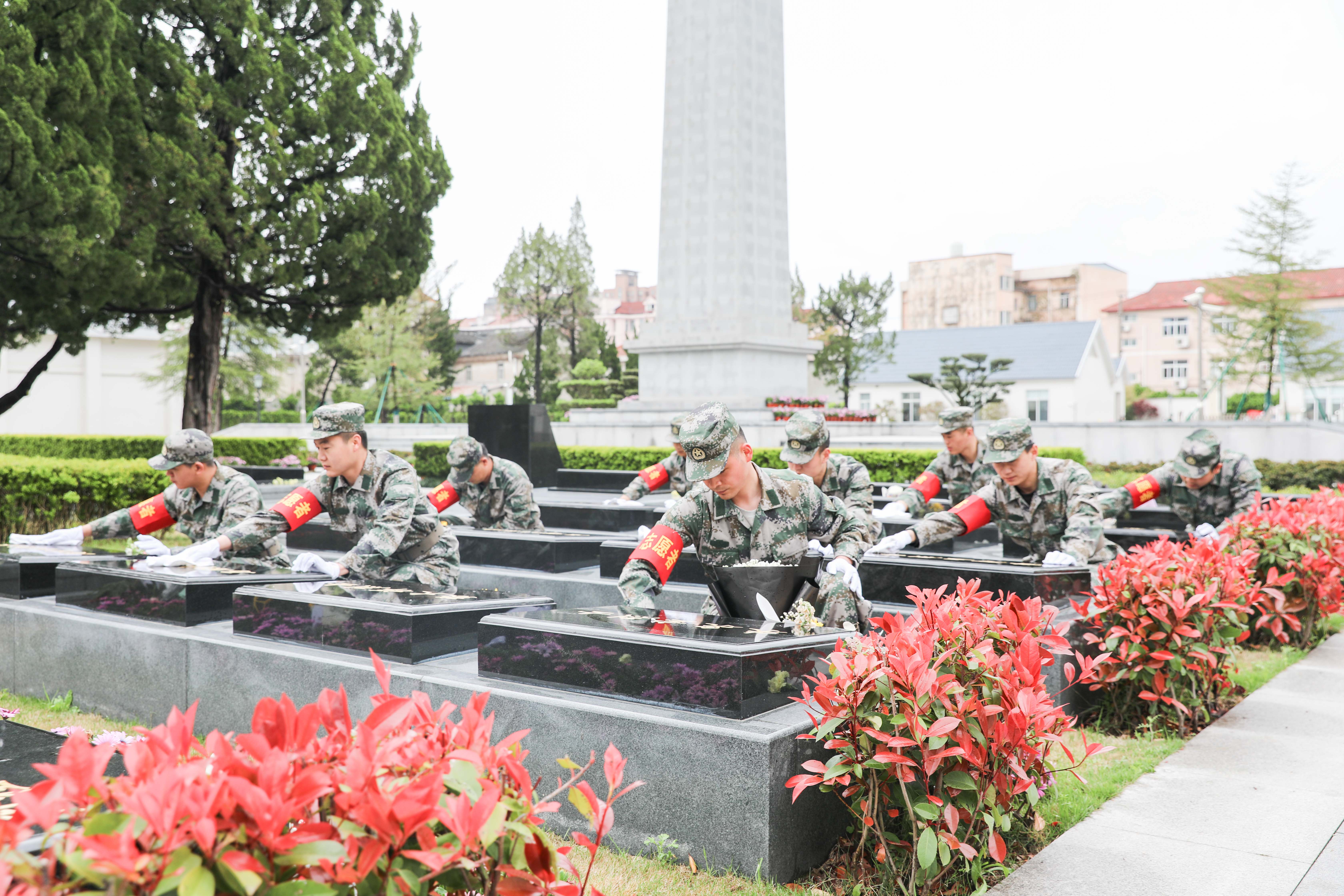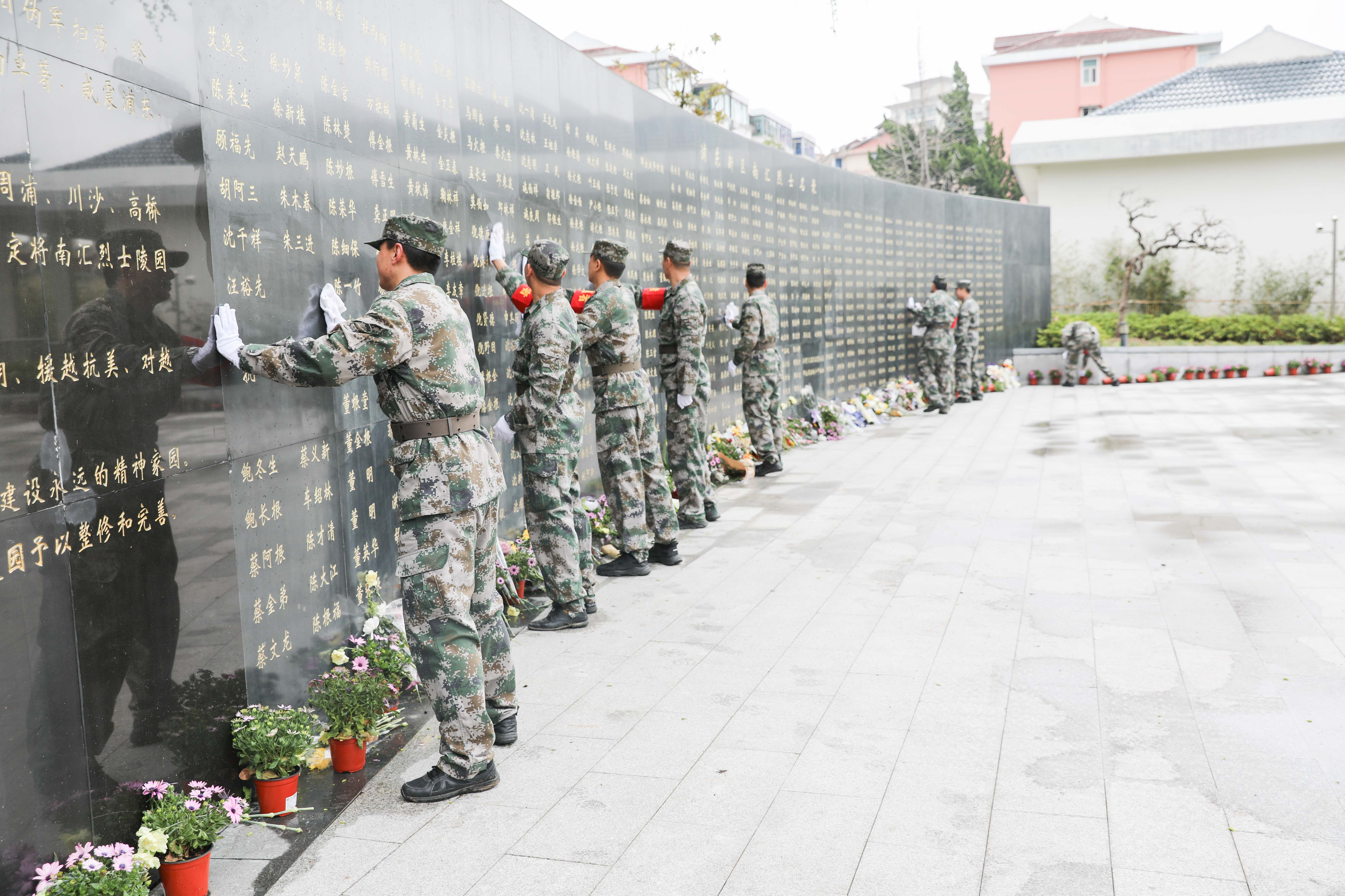 “天地英雄氣,千秋尚凜然”。在革命烈士紀(jì)念碑前,全體人員整齊列隊(duì),神情肅然,懷著無比崇敬的心情向長眠于此的革命烈士們敬獻(xiàn)花籃、默哀鞠躬。隨后,志愿服務(wù)隊(duì)隊(duì)員走進(jìn)烈士墓區(qū),精心擦拭烈士名墻、墓碑、基座,擺放鮮花,緬懷先烈,寄托哀思。