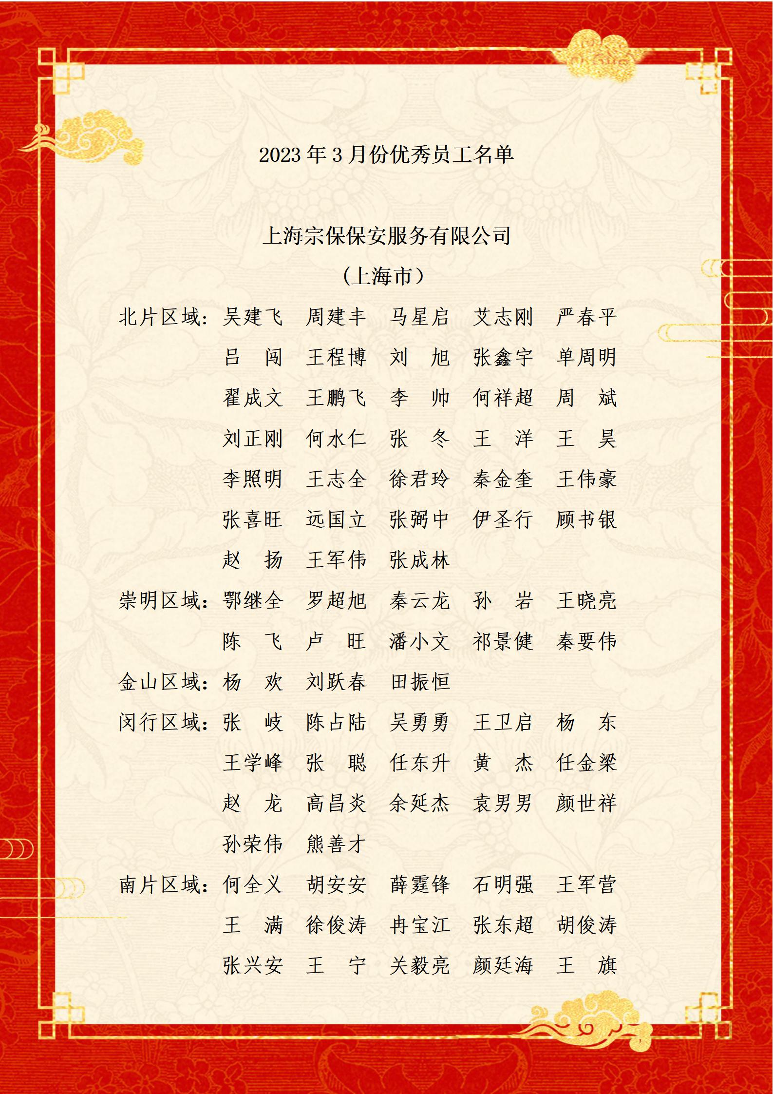 3月份,公司廣大員工根據(jù)甲方的任務(wù)要求,按照公司的安排部署,發(fā)揚(yáng)嚴(yán)謹(jǐn)務(wù)實(shí)、勇挑重?fù)?dān)的工作作風(fēng),助力完成了“微光匯聚 璀璨唐鎮(zhèn)”2023年文明嘉年華活動(dòng)和高橋鎮(zhèn)2023年重大民生實(shí)事項(xiàng)目開工儀式的安保任務(wù),全力配合甲方做好治安巡邏聯(lián)防、物業(yè)保障服務(wù)、生態(tài)環(huán)境保護(hù)、高鐵線路巡防等工作。期間,涌現(xiàn)出了一批盡心履責(zé)、崗位建功、拾金不昧、熱心助人的優(yōu)秀員工和先進(jìn)典型。
