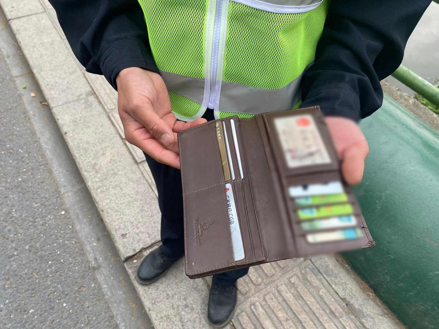 當(dāng)日9:30,公司員工黃合發(fā)在東湖北路永旺停車場(chǎng)值勤時(shí),撿到一個(gè)錢包,內(nèi)有若干現(xiàn)金、銀行卡和身份證,但沒有找到失主的聯(lián)系方式。