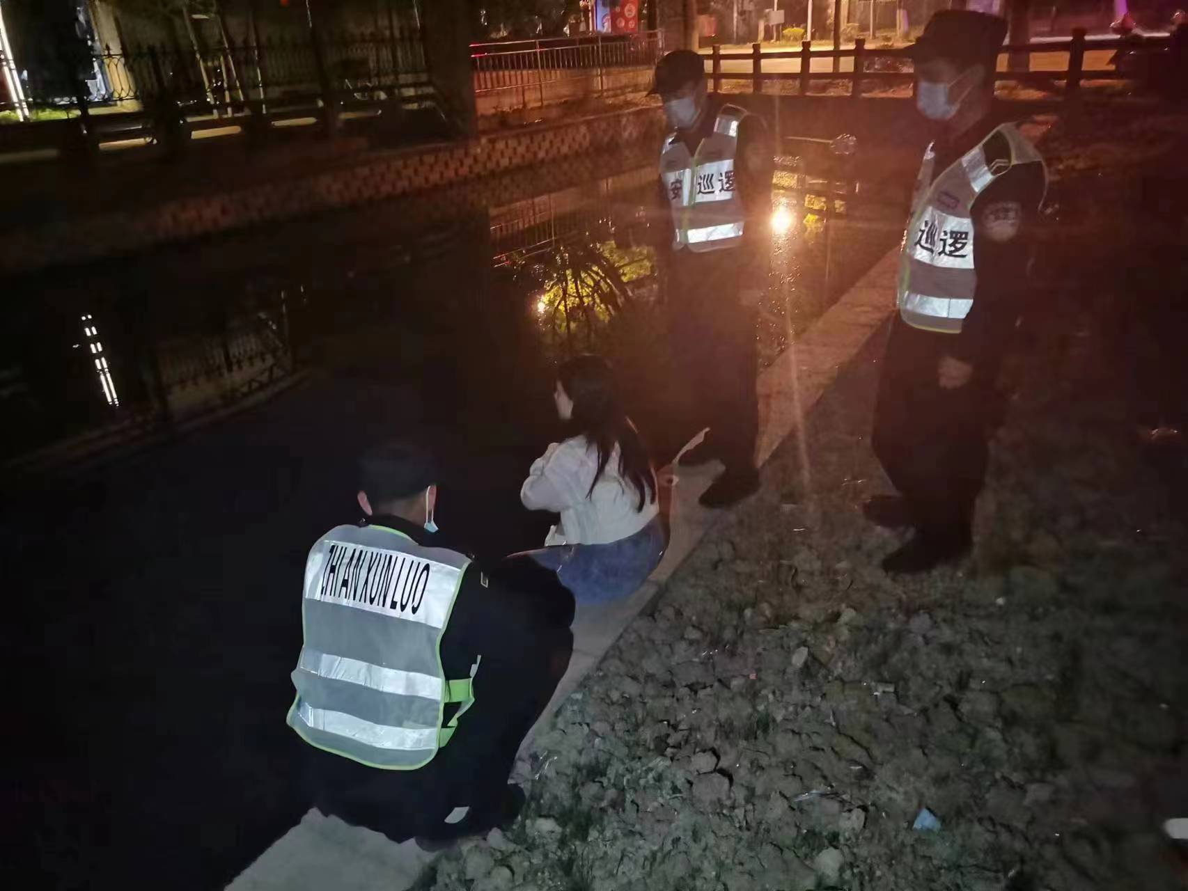 當晚21:00,公司員工孔志強、陳小豹和尹向陽在孫橋中學河道附近巡邏時,發(fā)現(xiàn)一位身穿白色T恤的女子獨自坐在河岸邊痛哭。