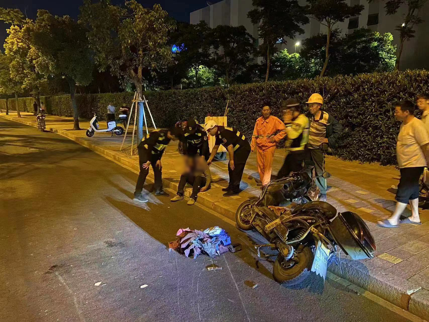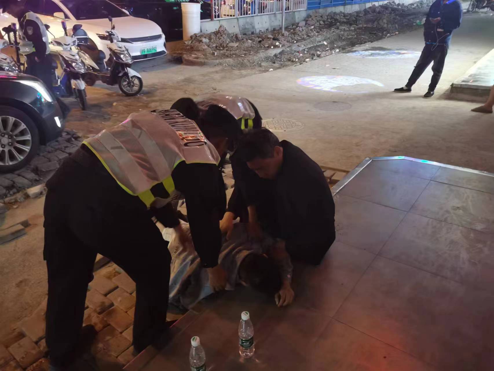 當天19:00,公司員工熊平安和孟顏在聚橙路尋港街巡邏時,看到一位老人躺在人行道上,一輛電動車倒在一旁,便立即上前察看。
