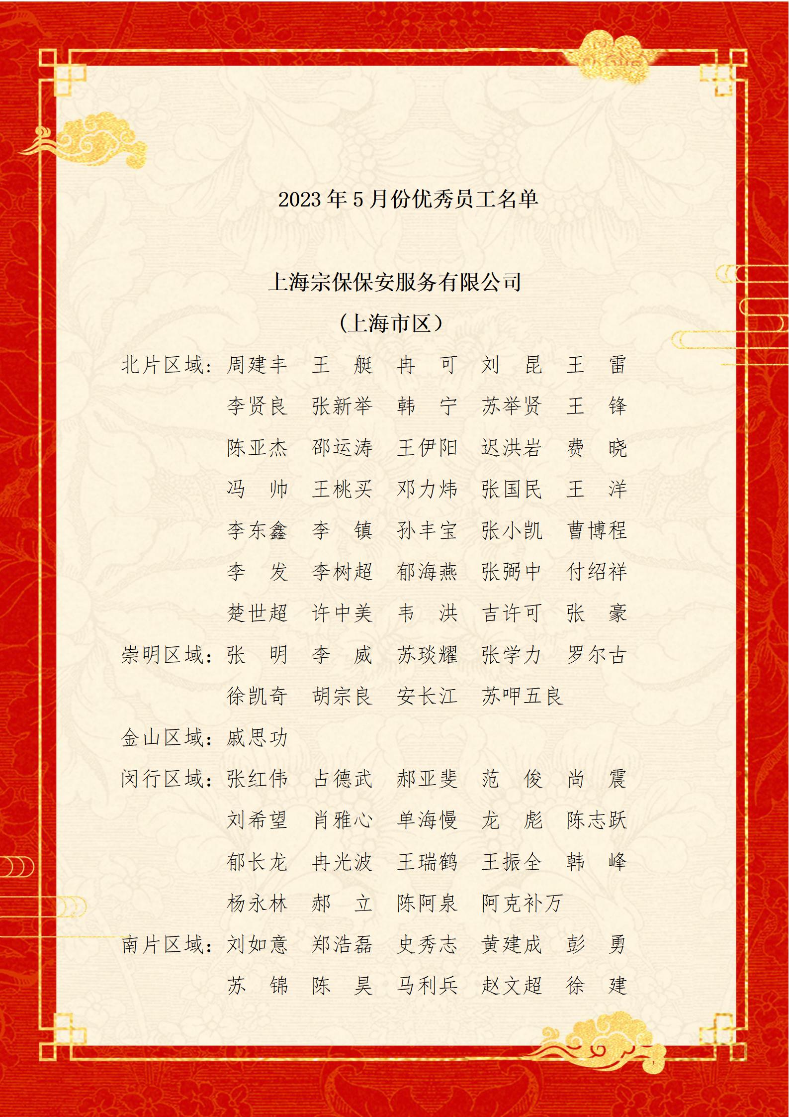 5月份,公司廣大員工根據(jù)甲方的任務(wù)要求,按照公司的安排部署,保持和發(fā)揚(yáng)務(wù)實(shí)負(fù)責(zé)、積極作為的工作作風(fēng),助力完成了五一小長(zhǎng)假南京歡樂(lè)谷、上海市假私卷煙聯(lián)合集中銷毀儀式、第十屆上海民俗文化節(jié)暨三林塘圣堂廟會(huì)開(kāi)幕儀式等多個(gè)大型活動(dòng)臨時(shí)保障任務(wù),全力配合甲方做好了城市管理輔助、治安巡邏聯(lián)防、物業(yè)服務(wù)保障、生態(tài)環(huán)境保護(hù)、高鐵線路巡防等工作。期間,涌現(xiàn)出了一批盡心履責(zé)、崗位建功、拾金不昧、熱心助人的優(yōu)秀員工和先進(jìn)典型。