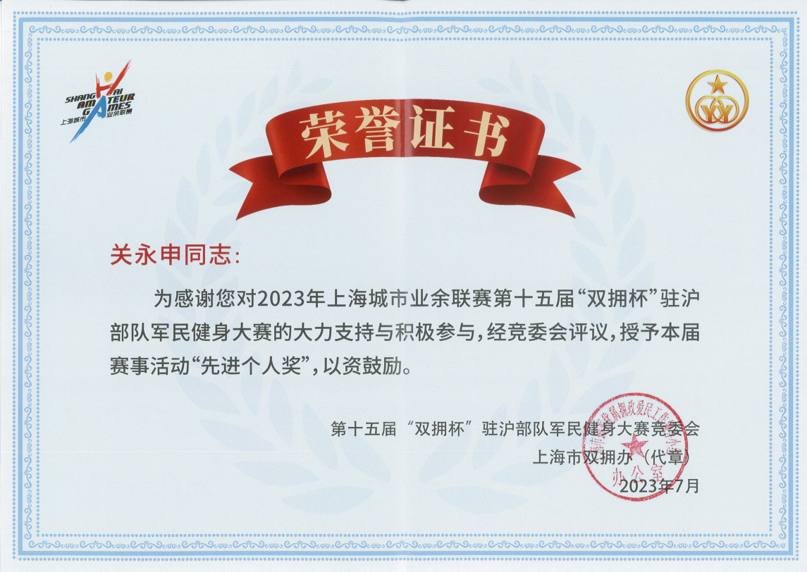 中國人民解放軍建軍96周年之際,為進(jìn)一步踐行習(xí)總書記關(guān)于雙擁工作和體育工作的重要論述,以黨的二十大精神為指導(dǎo),由市擁軍優(yōu)屬擁政愛民工作領(lǐng)導(dǎo)小組辦公室、上海警備區(qū)政治工作局、市體育局、市擁軍優(yōu)屬基金會(huì)主辦的以“牢記使命礪精兵,健身強(qiáng)軍爭第一”為主題的第十五屆“雙擁杯”駐滬部隊(duì)軍民健身大賽,于6月27日至7月9日在軍地各單位駐地陸續(xù)展開,宗保公司作為退役軍人創(chuàng)辦企業(yè)參加大賽。