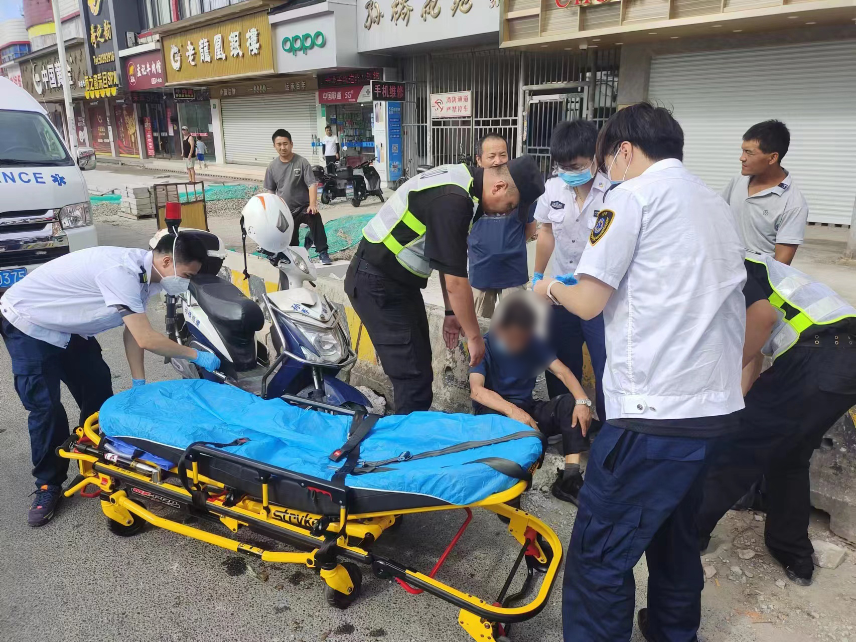 兩人立即上前察看,該男子意識(shí)似乎不清,且身體一直在抽搐。王子宇見(jiàn)狀趕緊將情況報(bào)告派出所值班室,苗滿想則扶起倒地電瓶車,推至不妨礙交通的地方。