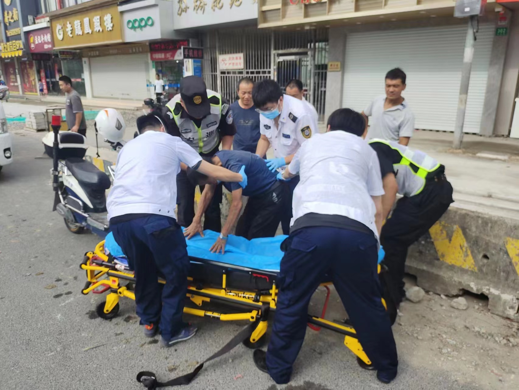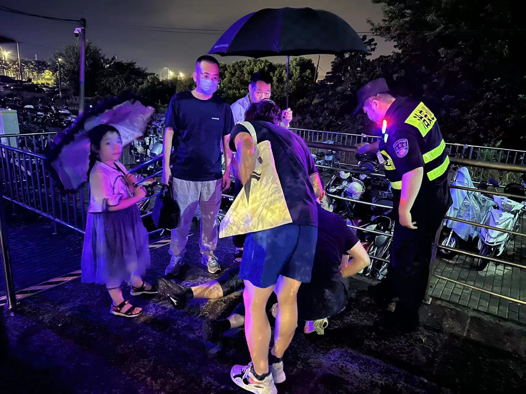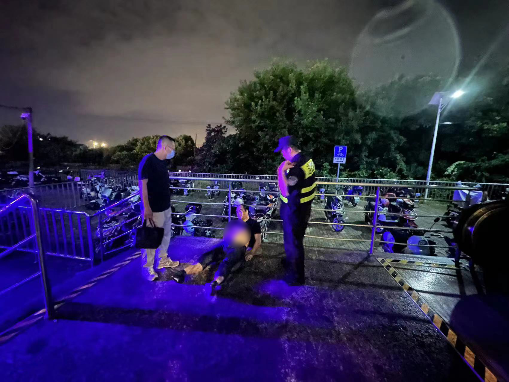 當(dāng)日20:30,公司員工王子宇和苗滿想巡查至航三路地鐵站附近時(shí),發(fā)現(xiàn)一騎電瓶車的男子摔倒在路邊,幾位路人在一旁圍觀。