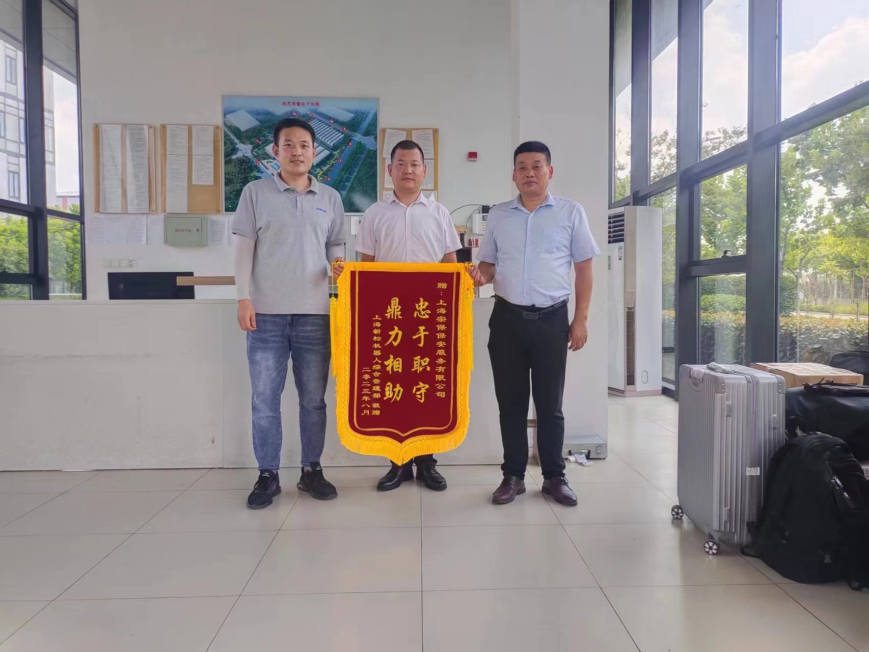 8月10日,宗保公司駐浦東新區(qū)臨港上海新松機(jī)器人有限公司項(xiàng)目收到綜合管理部送來(lái)的繡有“忠于職守 鼎力相助”的錦旗,感謝公司提供高效安全的服務(wù)保障,贊揚(yáng)員工擔(dān)當(dāng)作為、嚴(yán)謹(jǐn)細(xì)致的工作表現(xiàn)和敬業(yè)精神。