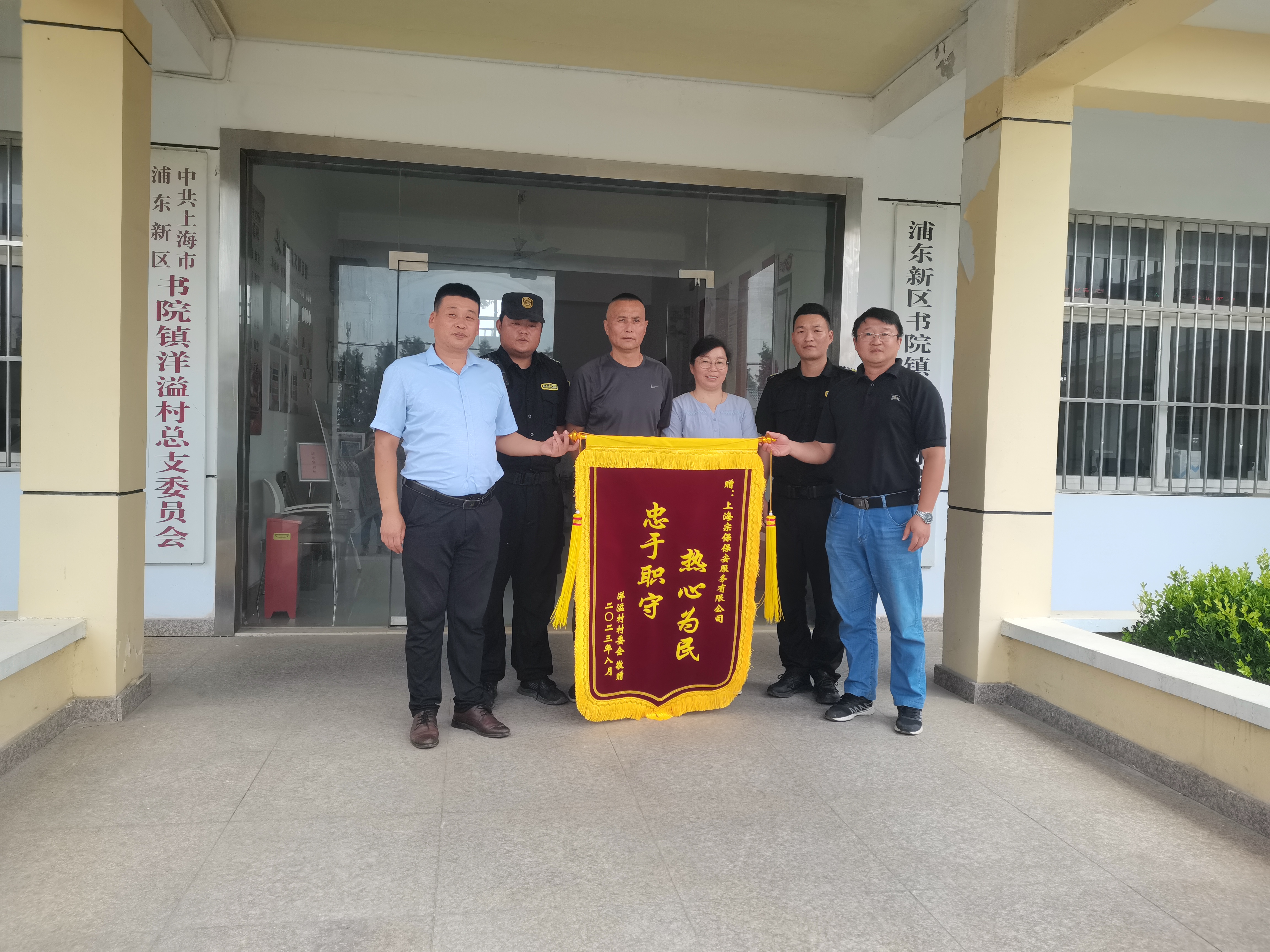 浦東新區(qū)書(shū)院鎮(zhèn)洋溢村委會(huì)向宗保公司項(xiàng)目贈(zèng)送錦旗并致感謝信