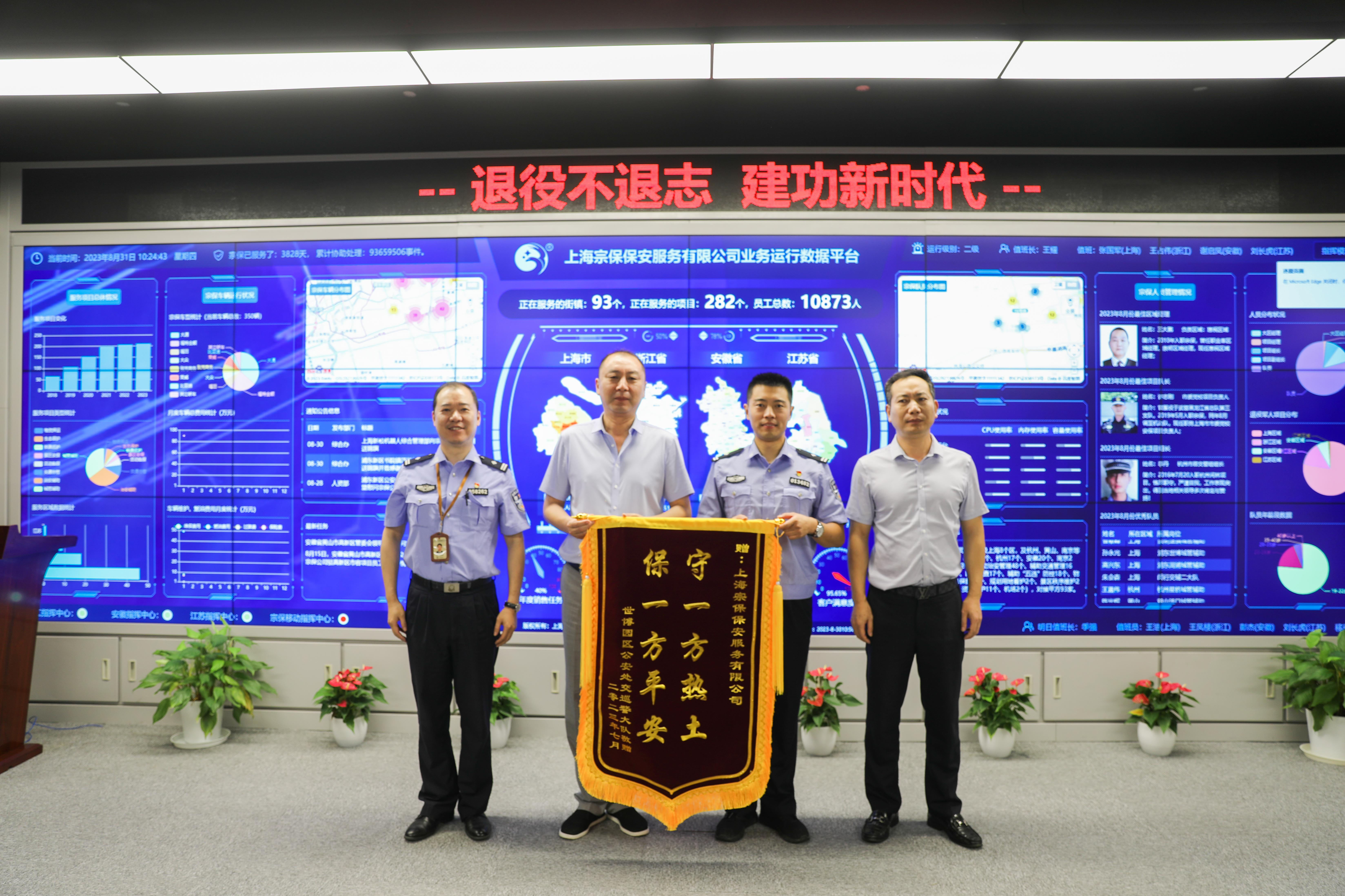 8月31日,浦東新區(qū)公安分局世博園區(qū)公安處交巡警大隊將一面繡有“守一方熱土 保一方平安”的錦旗和一封感謝信送到宗保公司董事長王耀的手中,感謝公司對交巡警大隊工作的大力支持。