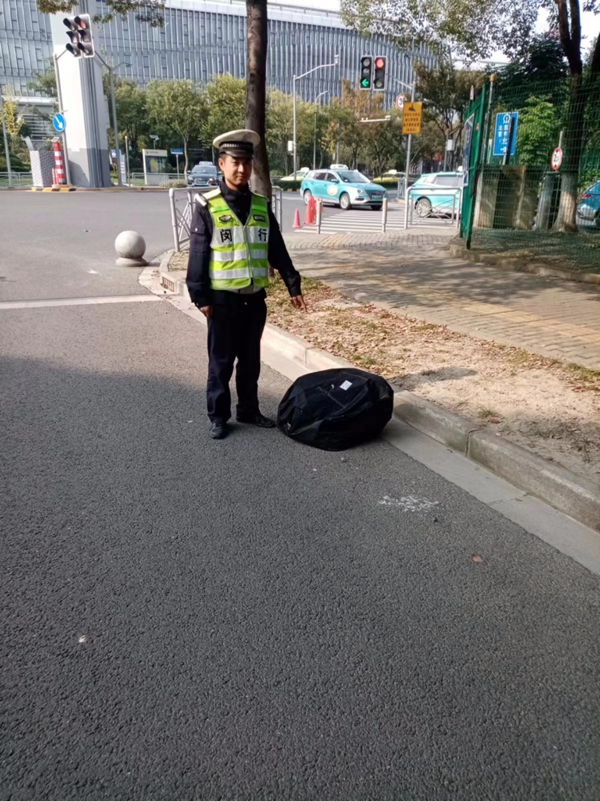 10月15日22:10,宗保公司駐閔行區(qū)新虹街道項目員工韓悅在邵虹路公交站臺值勤時,撿到一個黑色挎包,內有3張銀行卡、50多元現金和香煙等物品,但未發(fā)現失主的聯系方式。韓悅將情況報告了項目隊長,隨后來到在附近執(zhí)勤的民警那里,向民警說明情況后,就將挎包上交給了民警。