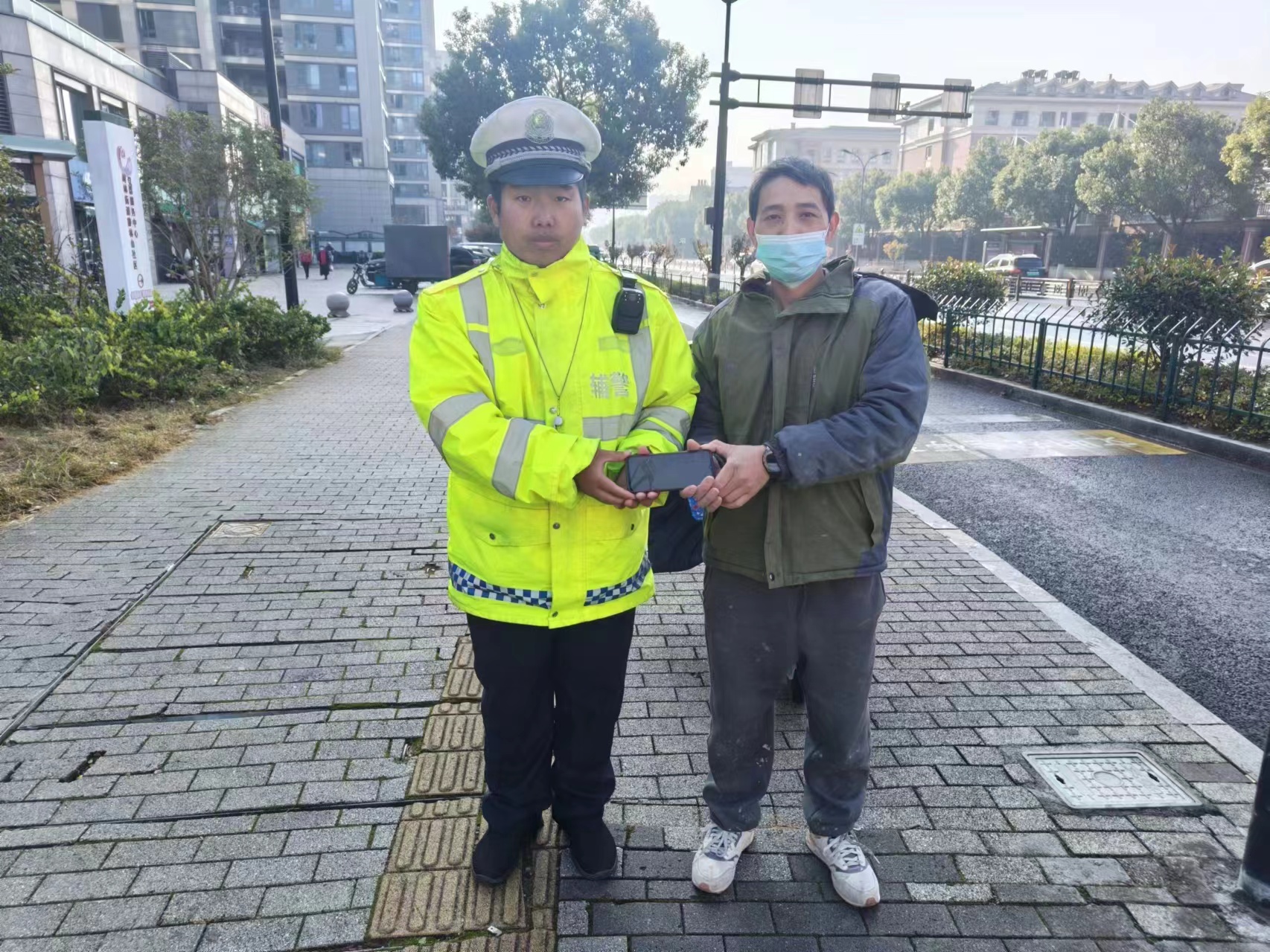 12月5日8:40,浙江民泰公司駐杭州市余杭區(qū)閑林交管輔助項(xiàng)目員工房景紅在上和路閑富北路交叉口值勤時(shí),撿到一部OPPO手機(jī),報(bào)告當(dāng)班組長(zhǎng)后便在原地等待失主。大約過(guò)了30分鐘左右,一位男子打來(lái)電話(huà)尋找手機(jī)。房景紅與他約好碰面時(shí)間地點(diǎn)。很快,一男子趕到現(xiàn)場(chǎng),經(jīng)核實(shí)確認(rèn)其是失主后,房景紅將手機(jī)交還給了他。