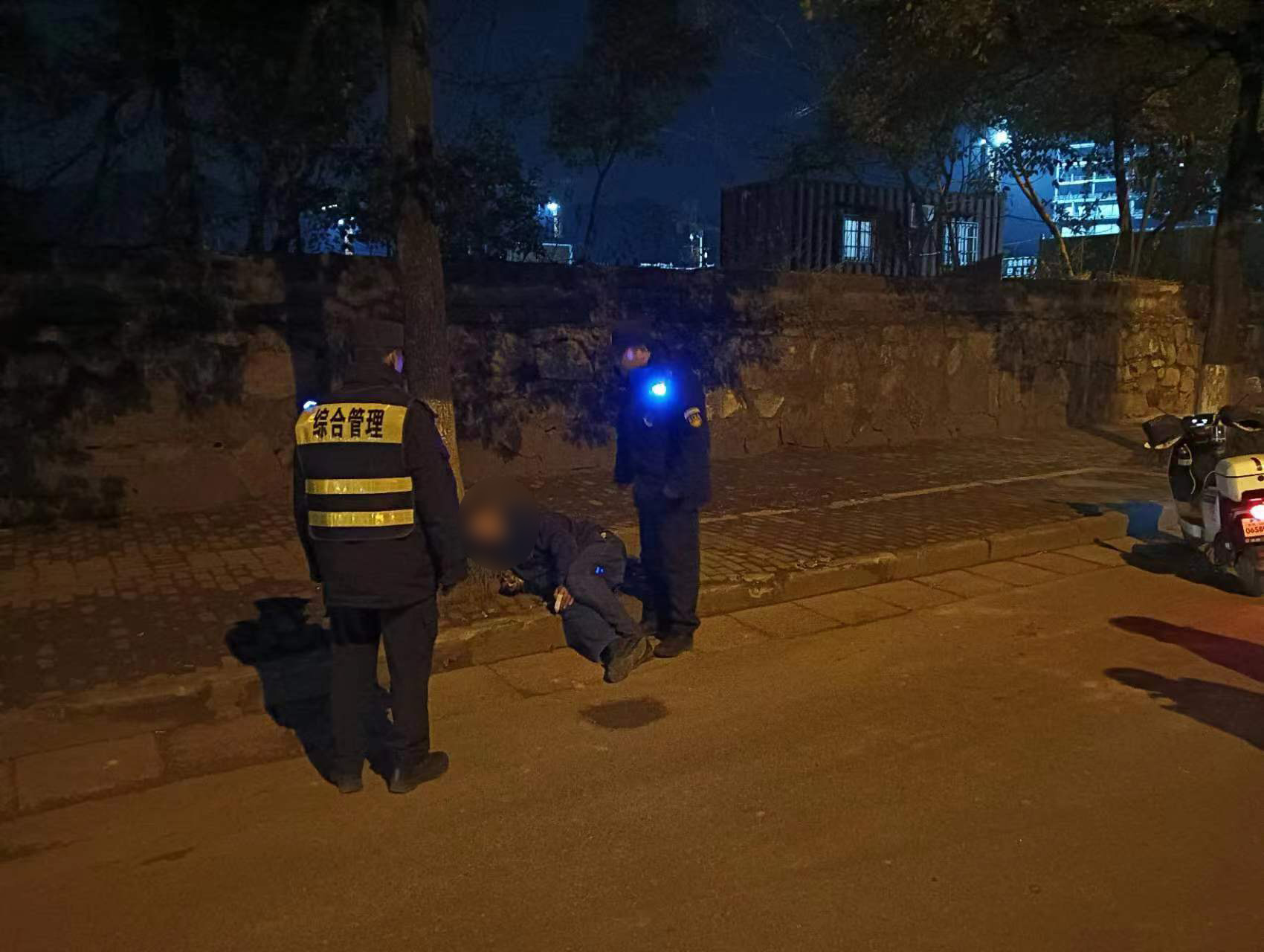 當(dāng)日19:00,公司員工馮奧、楊顯峰和周健在閑興路10號(hào)附近巡查時(shí),發(fā)現(xiàn)一男子躺在路邊,便趕緊上前察看。男子蜷縮著身體,雙手按壓著腹部,表情顯得十分痛苦。