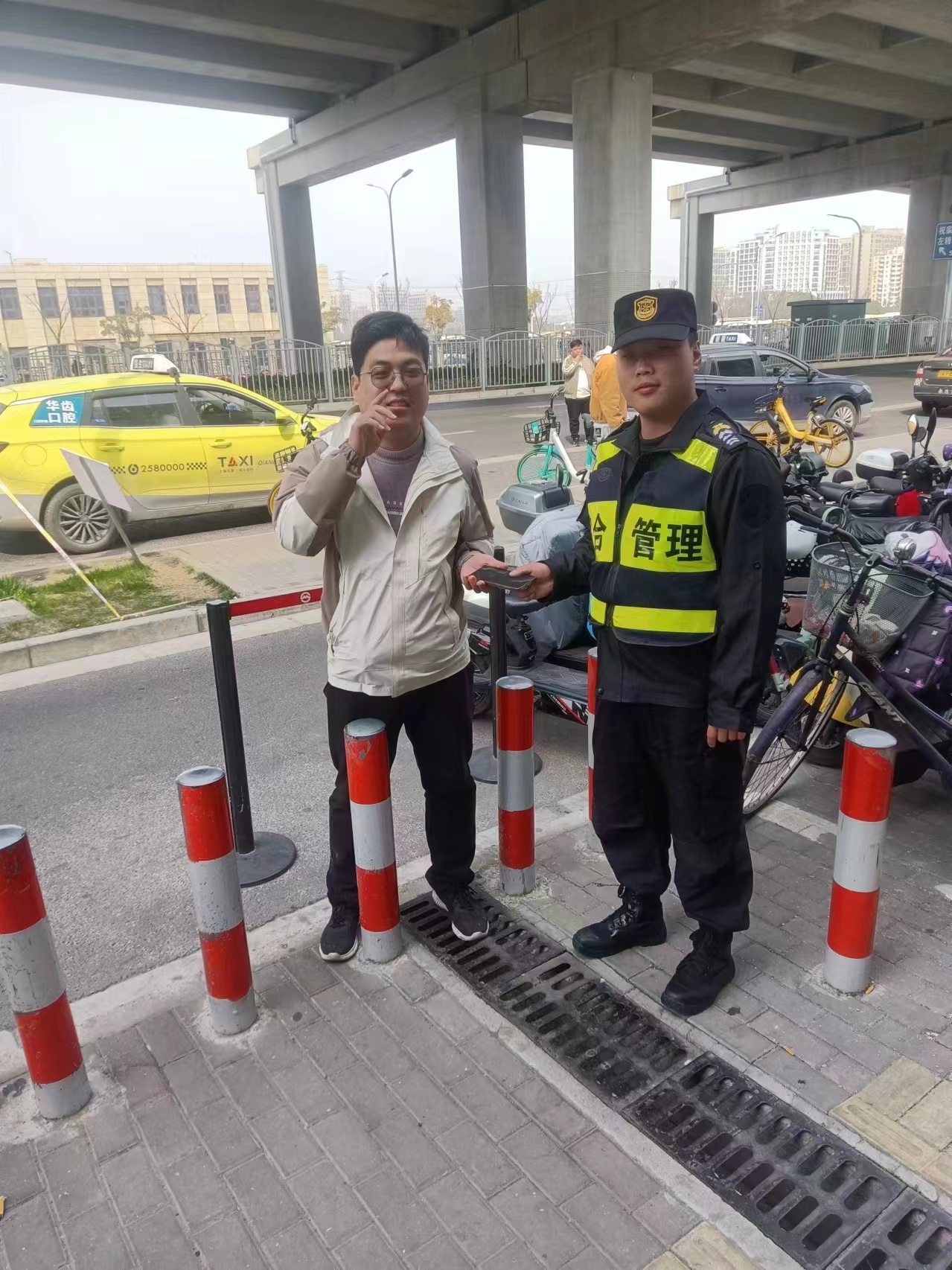 3月20日8:11,宗保公司駐閔行區(qū)虹橋交管輔助項(xiàng)目員工王基嘎在吳中路金匯路路口執(zhí)勤時(shí),撿到一部華為手機(jī),詢問周圍人員無人認(rèn)領(lǐng)后,便將情況報(bào)告了帶班組長(zhǎng),并按指示在原地邊執(zhí)勤邊等失主。半小時(shí)后,一位騎電動(dòng)車的女士趕到現(xiàn)場(chǎng),焦急地詢問是否看到一部手機(jī)。王基嘎問了問該女士丟失手機(jī)的品牌、型號(hào)、外殼式樣等特征,得到女士確認(rèn),且通過密碼解鎖手機(jī)后,就將手機(jī)交還給了她。女士拿著手機(jī),再三向公司員工王基嘎表示感謝!