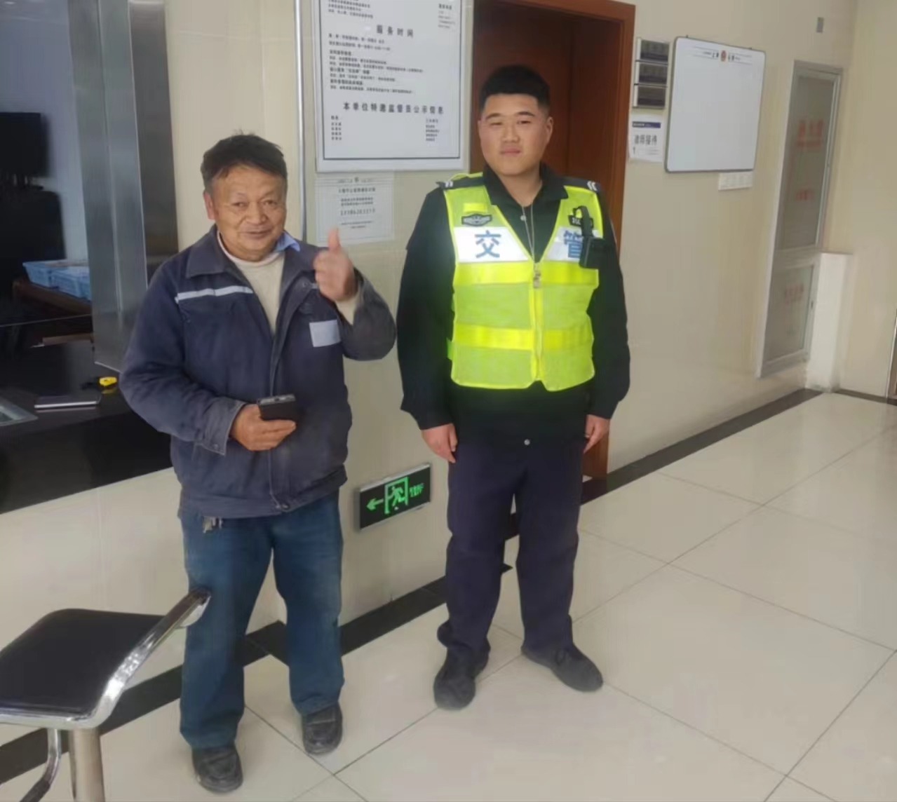 3月26日12:50,宗保公司駐浦東新區(qū)新場(chǎng)交管輔助項(xiàng)目員工黨宇航在新場(chǎng)大街執(zhí)勤時(shí),撿到一部華為手機(jī)便在原地等待。約過了20多分鐘,仍然沒有見失主來認(rèn)領(lǐng),黨宇航就將手機(jī)上交到了新場(chǎng)派出所值班大廳,由民警幫尋失主。隨后,失主得知手機(jī)信息趕到派出所認(rèn)領(lǐng),對(duì)宗保員工黨宇航連連表示感謝。