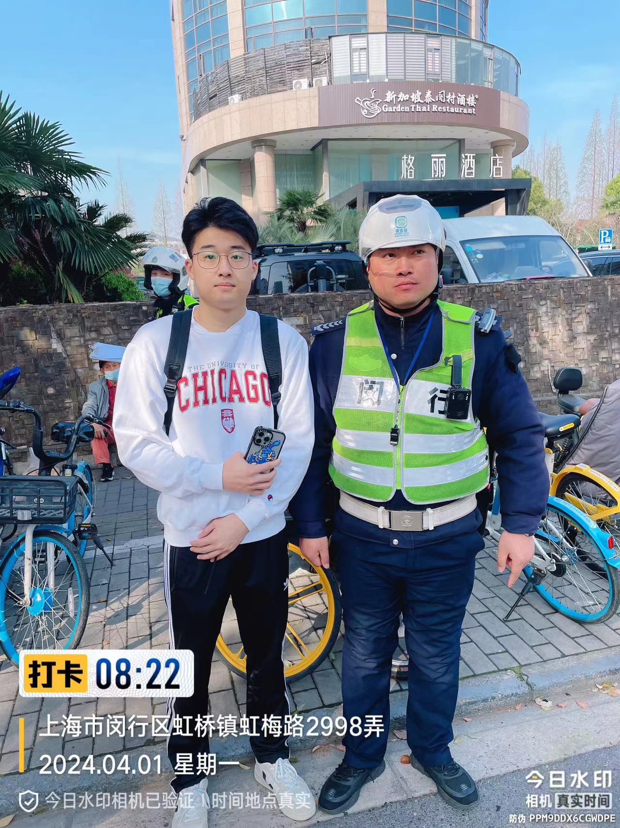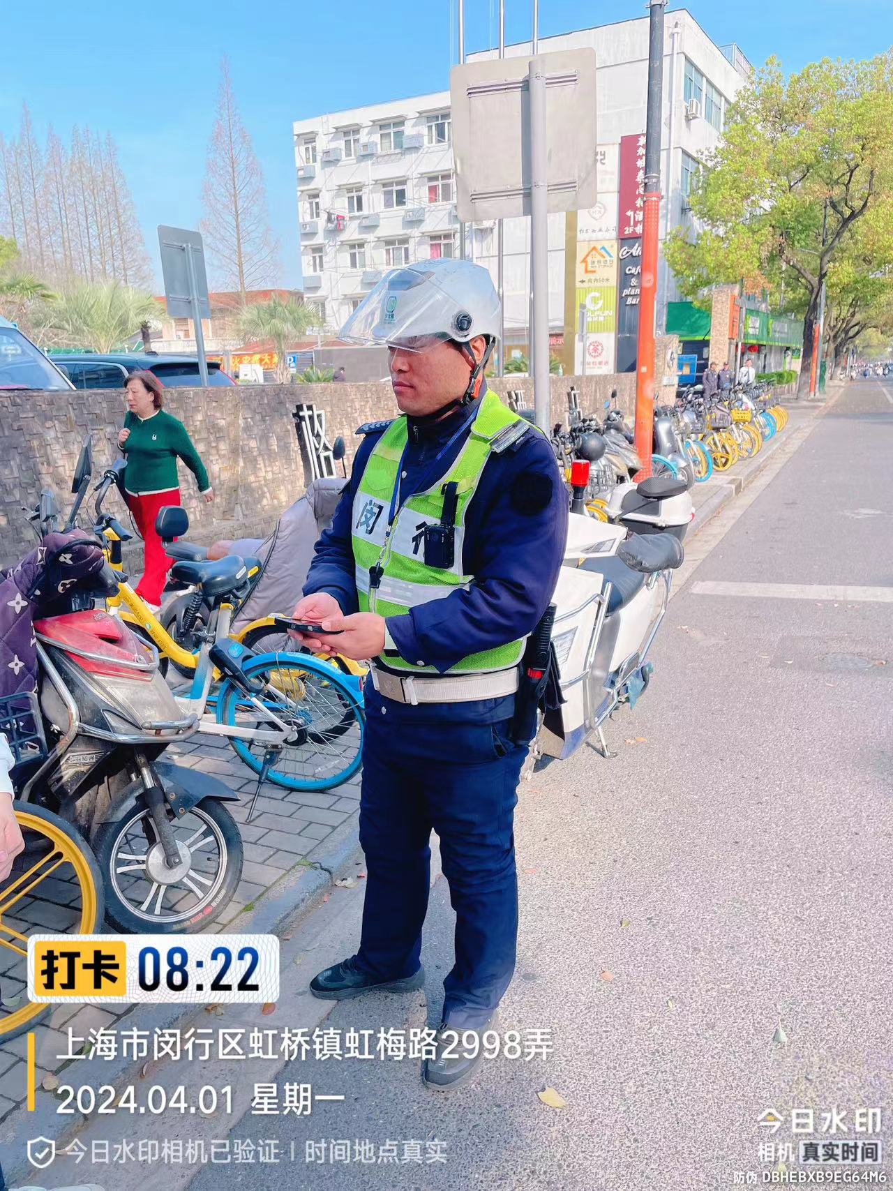4月1日8:17,宗保公司駐閔行區(qū)虹橋交管輔助項(xiàng)目員工何希權(quán)在吳美路與虹許路路口執(zhí)勤時(shí),撿到一部蘋果手機(jī)。詢問周圍人員無果后,便將情況報(bào)告了帶班隊(duì)長(zhǎng),并按指示在原地等待。過了幾分鐘,一位身穿白色衛(wèi)衣的小伙子焦急地趕到現(xiàn)場(chǎng),說自己的手機(jī)在這附近掉了,同時(shí)描述了手機(jī)的品牌、外觀等細(xì)節(jié)。何希權(quán)初步判斷所撿手機(jī)與小伙子描述的基本一致,就讓小伙子解鎖。小伙子成功解鎖手機(jī)后,何希權(quán)將手機(jī)交還給了他。小伙子十分高興,拿著手機(jī)連連向何希權(quán)道謝。