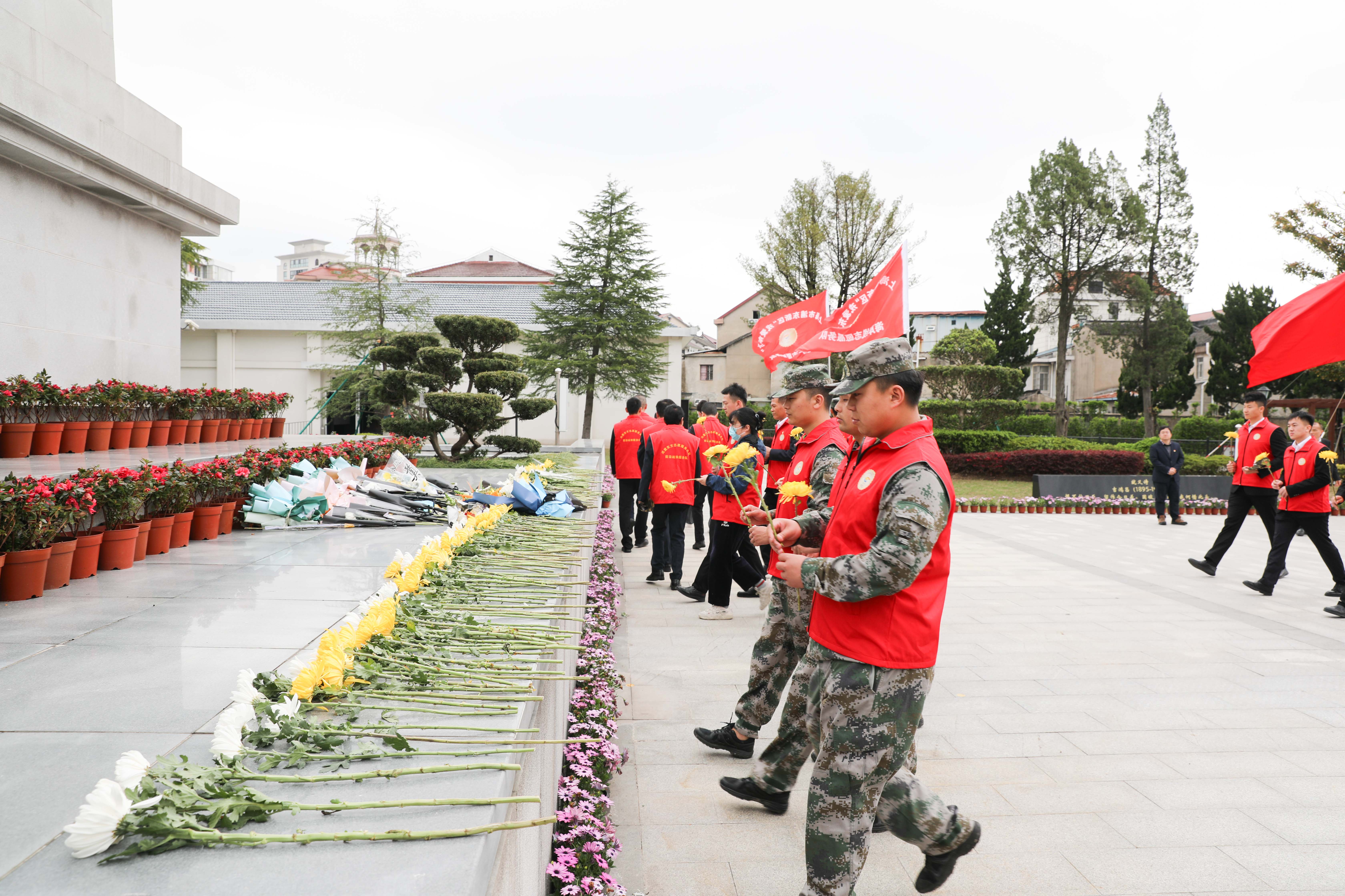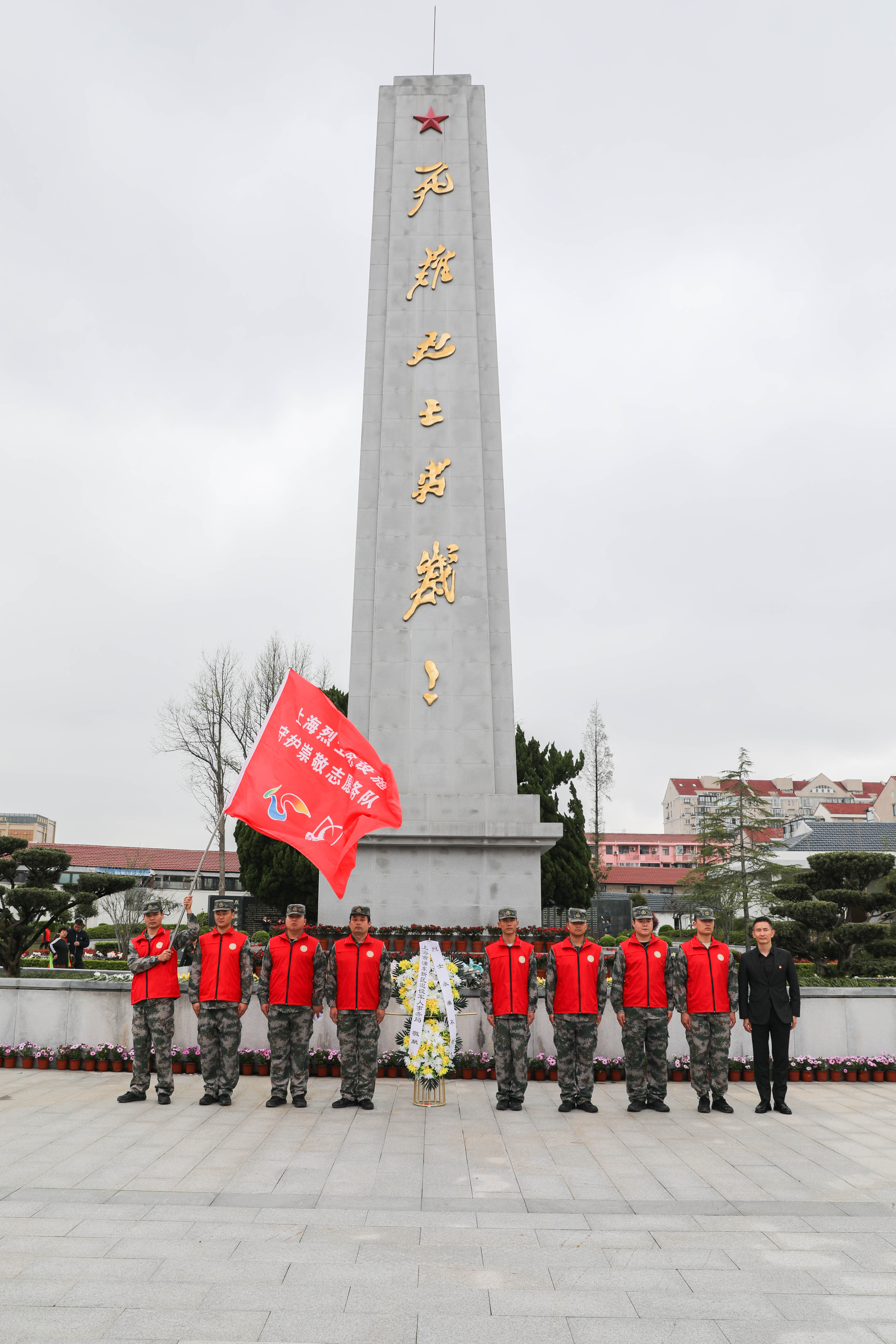 在莊嚴(yán)肅穆的革命烈士紀(jì)念碑前,志愿服務(wù)隊(duì)隊(duì)員們列隊(duì)肅立,低頭默哀,敬獻(xiàn)鮮花,深切緬懷、瞻仰、哀悼革命先烈。