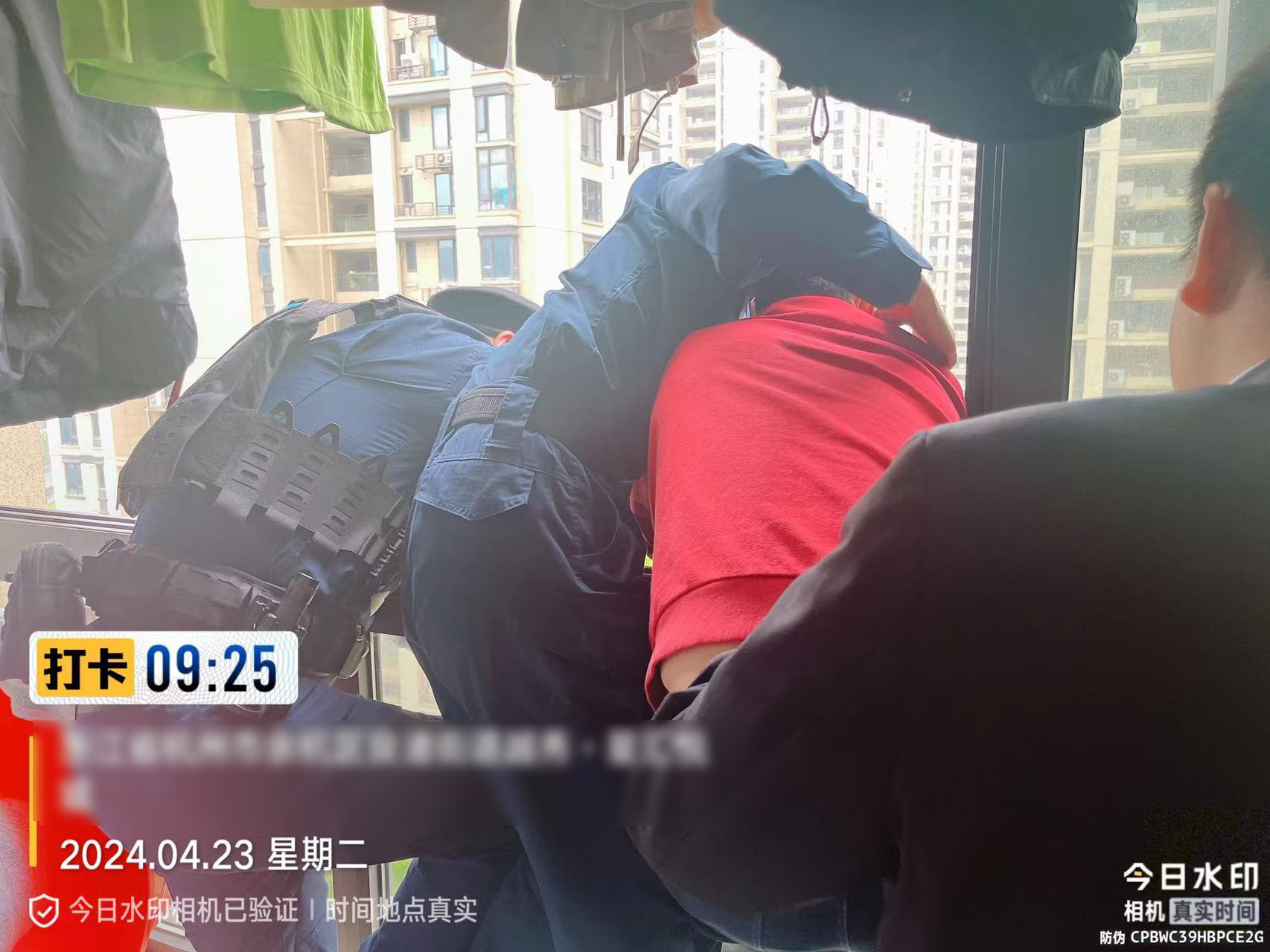 4月23日,浙江民泰公司駐杭州市余杭區(qū)良渚新城派出所項目員工合力成功救下欲跳樓輕生女子。