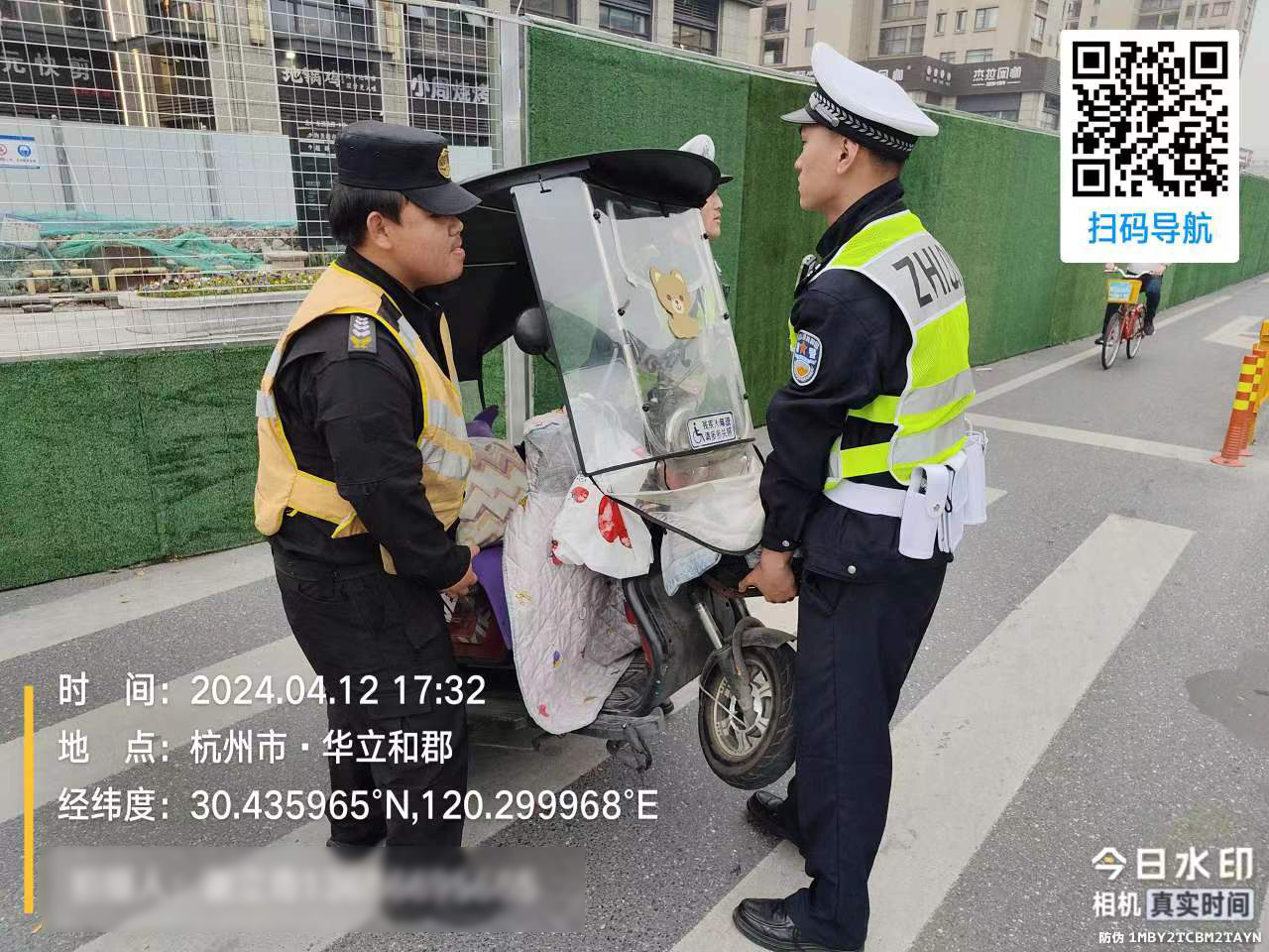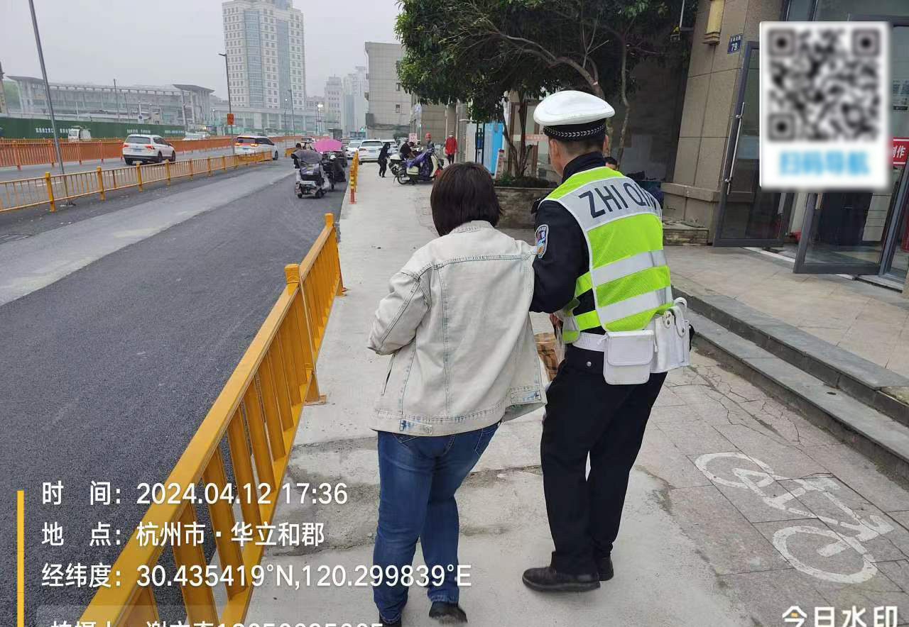 4月12日,浙江民泰公司駐杭州市臨平區(qū)東湖交管輔助項目員工熱心幫助代步車女士。