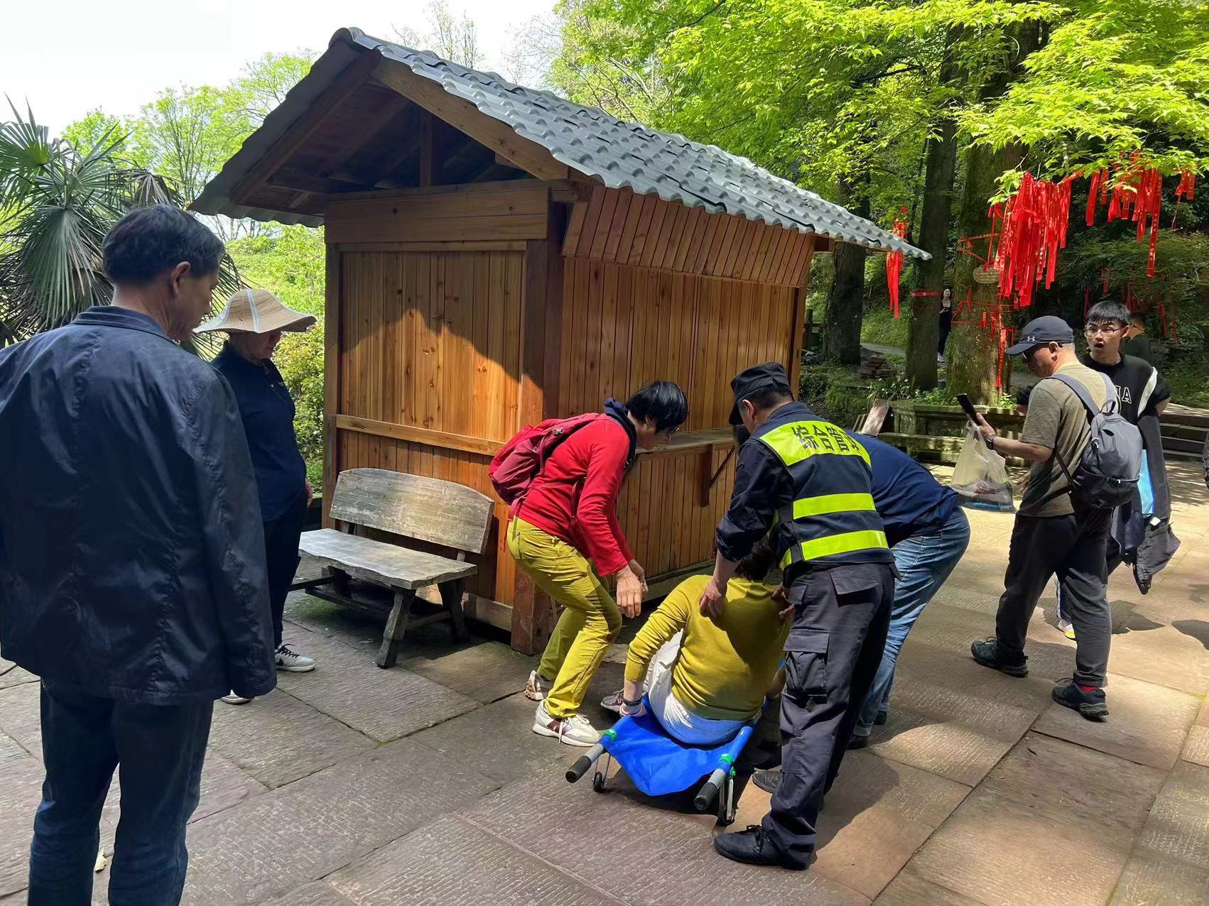 4月18日,宗保公司駐黃山市齊云山景區(qū)項目員工熱心幫助崴傷腳踝的女士。