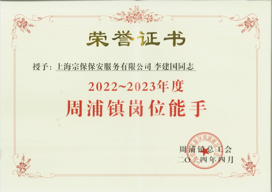 為進(jìn)一步弘揚勞模精神、勞動精神、工匠精神,近日,浦東新區(qū)周浦鎮(zhèn)總工會表彰了一批先進(jìn)集體和先進(jìn)個人,上海宗保保安服務(wù)有限公司1個項目隊和2名員工分獲殊榮。