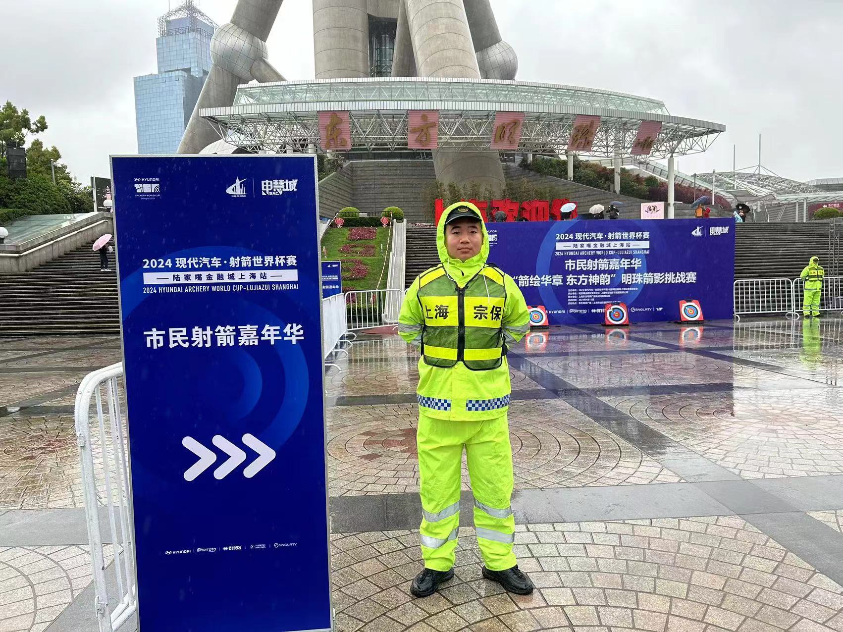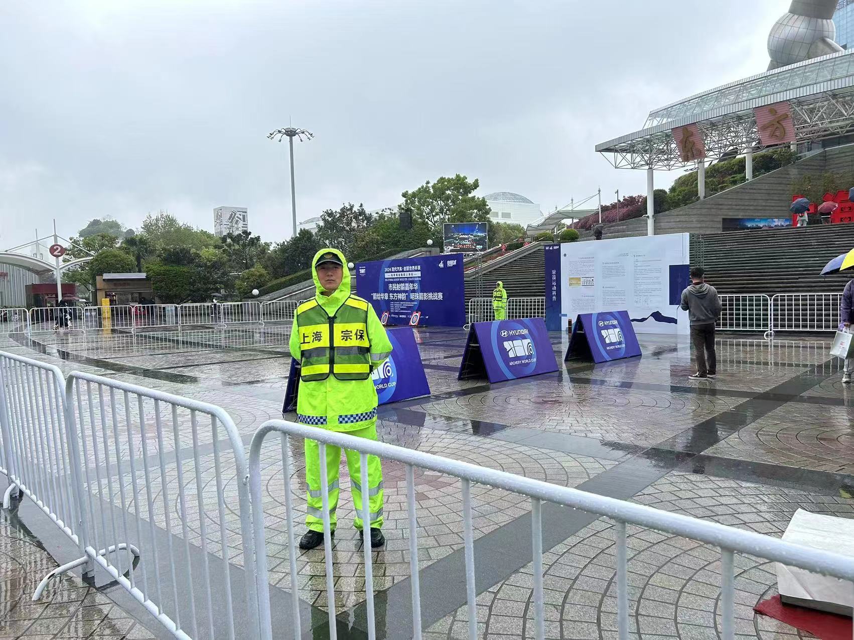 活動(dòng)當(dāng)天申城持續(xù)降雨,全體安保人員不懼風(fēng)雨、堅(jiān)守崗位,協(xié)助舉辦方做好人流疏導(dǎo)、場(chǎng)地巡查等秩序維護(hù)工作,助力完成了2024射箭世界杯賽上海站市民射箭嘉年華啟動(dòng)儀式安保任務(wù)。