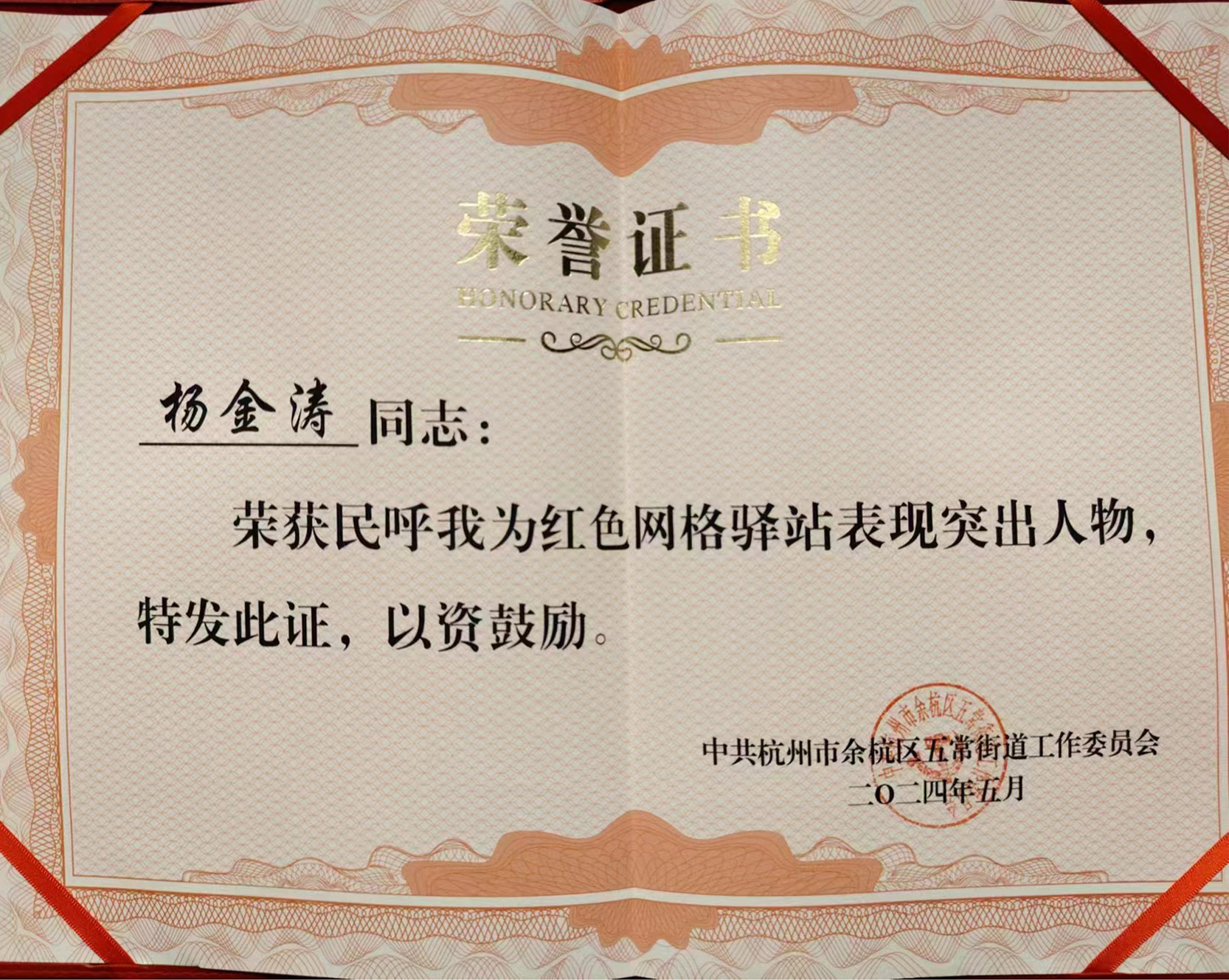 5月10日,杭州市余杭區(qū)五常街道舉行全面建強(qiáng)“三支隊(duì)伍”專項(xiàng)行動(dòng)啟動(dòng)暨“五九連心 在一起 建新功”黨建品牌發(fā)布儀式。在發(fā)布儀式上,公司員工楊金濤因工作實(shí)績(jī)突出受到余杭區(qū)五常街道黨工委表彰。