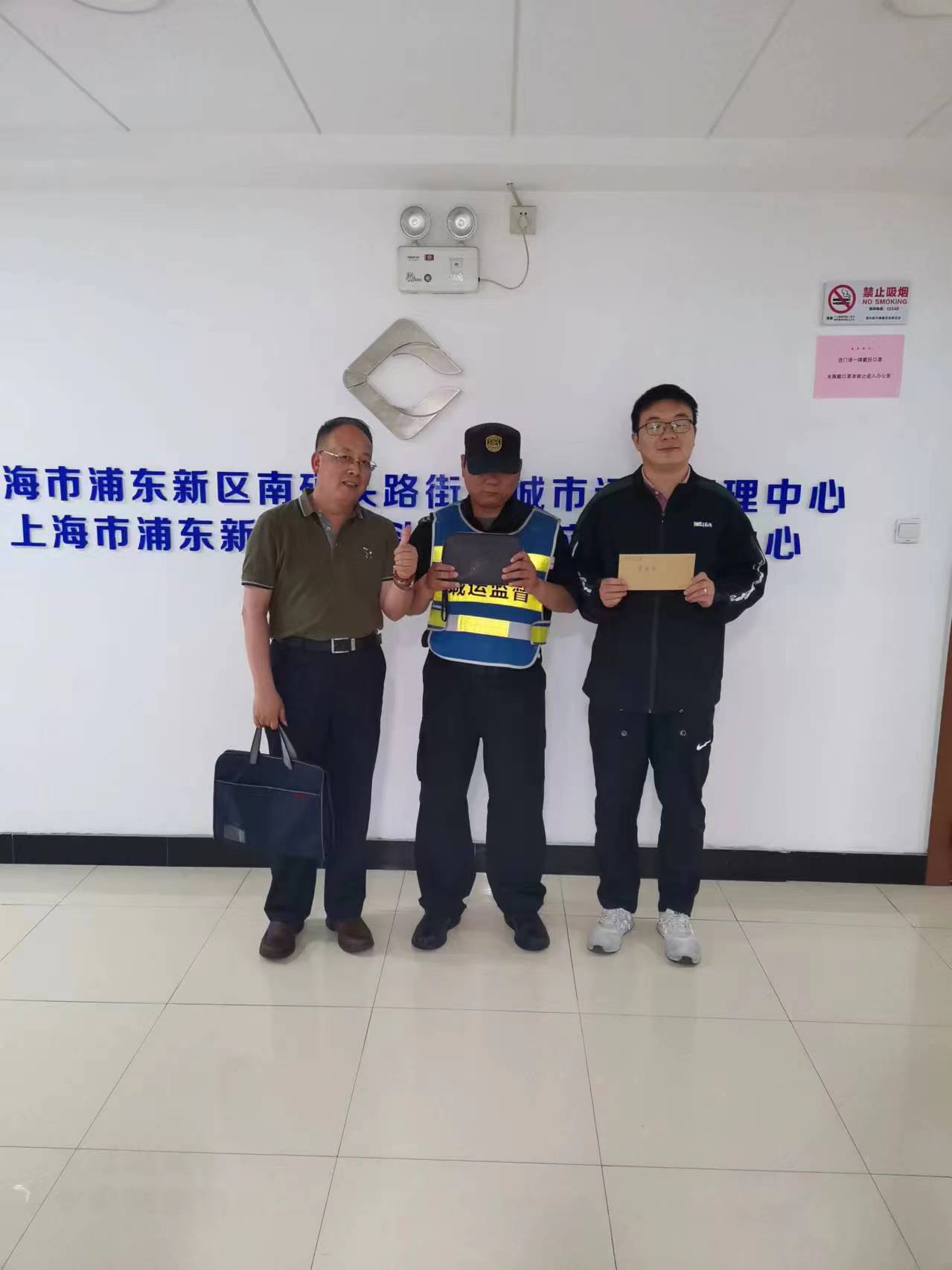 17:00,當(dāng)楊召群再次巡查到楊高南路1998號(hào)時(shí),發(fā)現(xiàn)失主在附近留有尋物啟事,隨即按照啟事上的電話與失主取得了聯(lián)系,確定對(duì)方是失主后,就讓失主前往南碼頭城運(yùn)中心領(lǐng)取手提包。