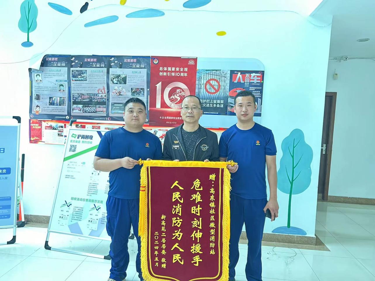 5月22日,宗保公司駐浦東新區(qū)高東鎮(zhèn)寶佳苑社區(qū)微型消防站收到新高苑二居委贈(zèng)送的一面繡有“危難時(shí)刻伸援手 人民消防為人民”的錦旗,感謝宗保公司員工撲滅轄區(qū)火情的英勇行為。