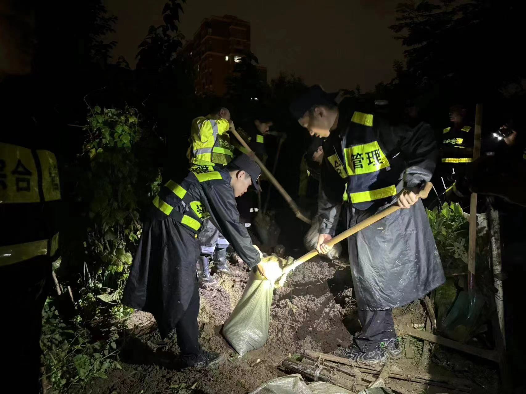 情況緊急,時間緊迫。6月27日19:30,浙江民泰公司駐余杭區(qū)閑林市容項目接到閑林城管中隊應急抗洪通知,請立即組織人員趕赴一米幼兒園段圍堰漫堤現(xiàn)場,支援圍堰增高作業(yè)。