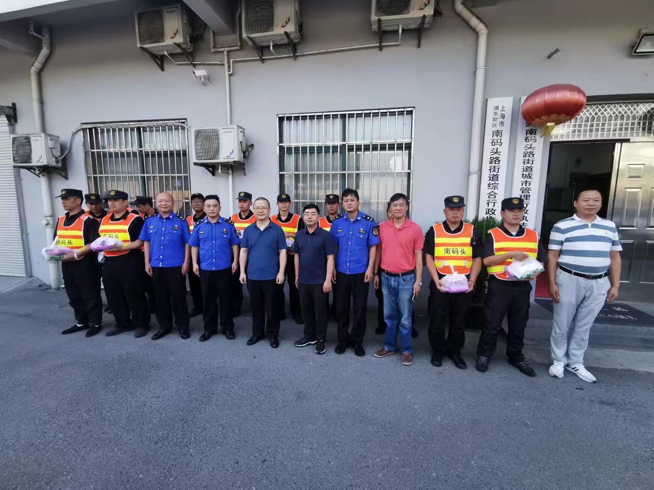 7月22日,浦東新區(qū)南碼頭路街道黨工委委員、辦事處副主任潘丹一行為堅守崗位的宗保員工送上防暑降溫慰問品,慰問高溫下奮戰(zhàn)在一線的宗保公司員工。