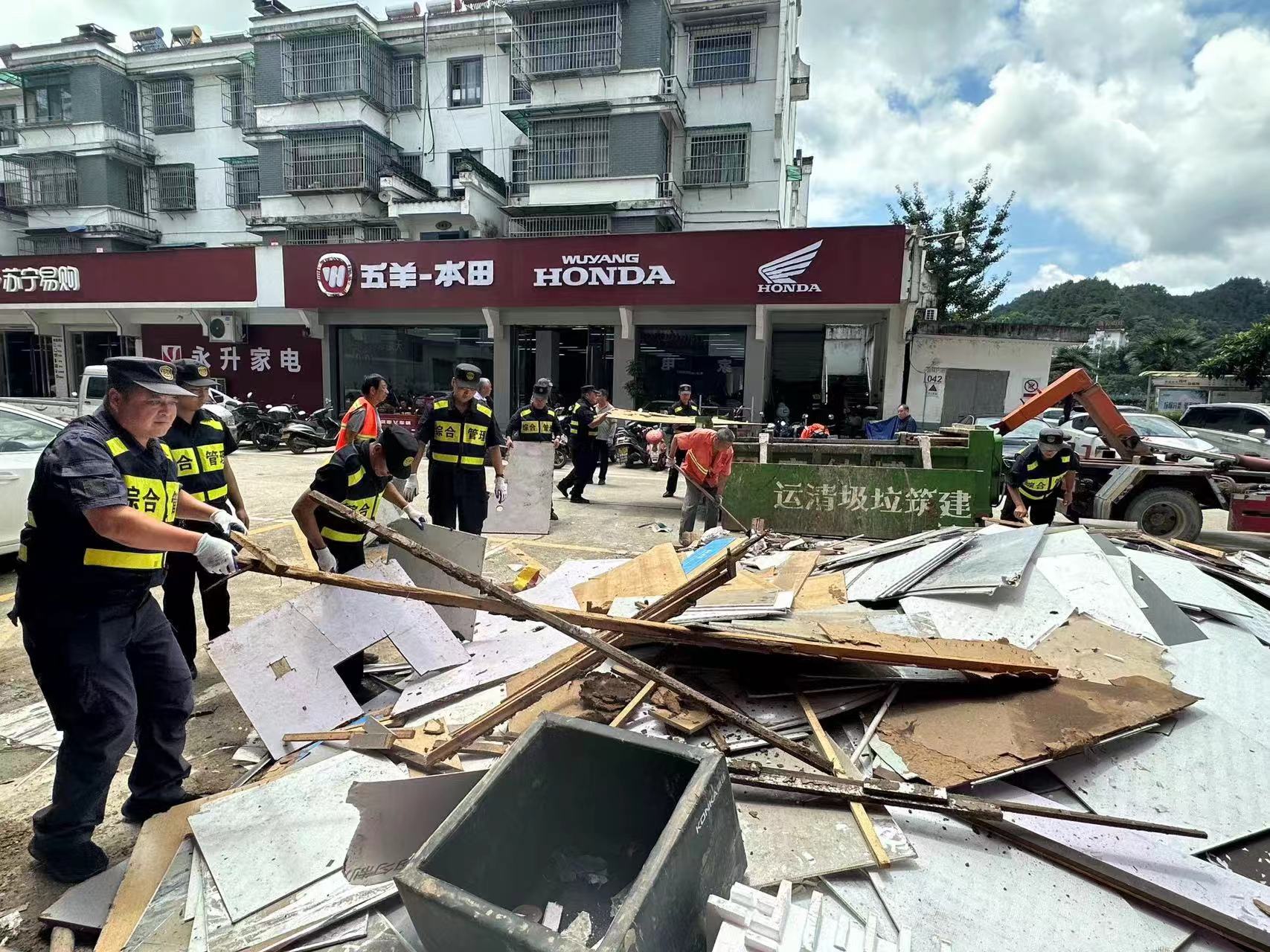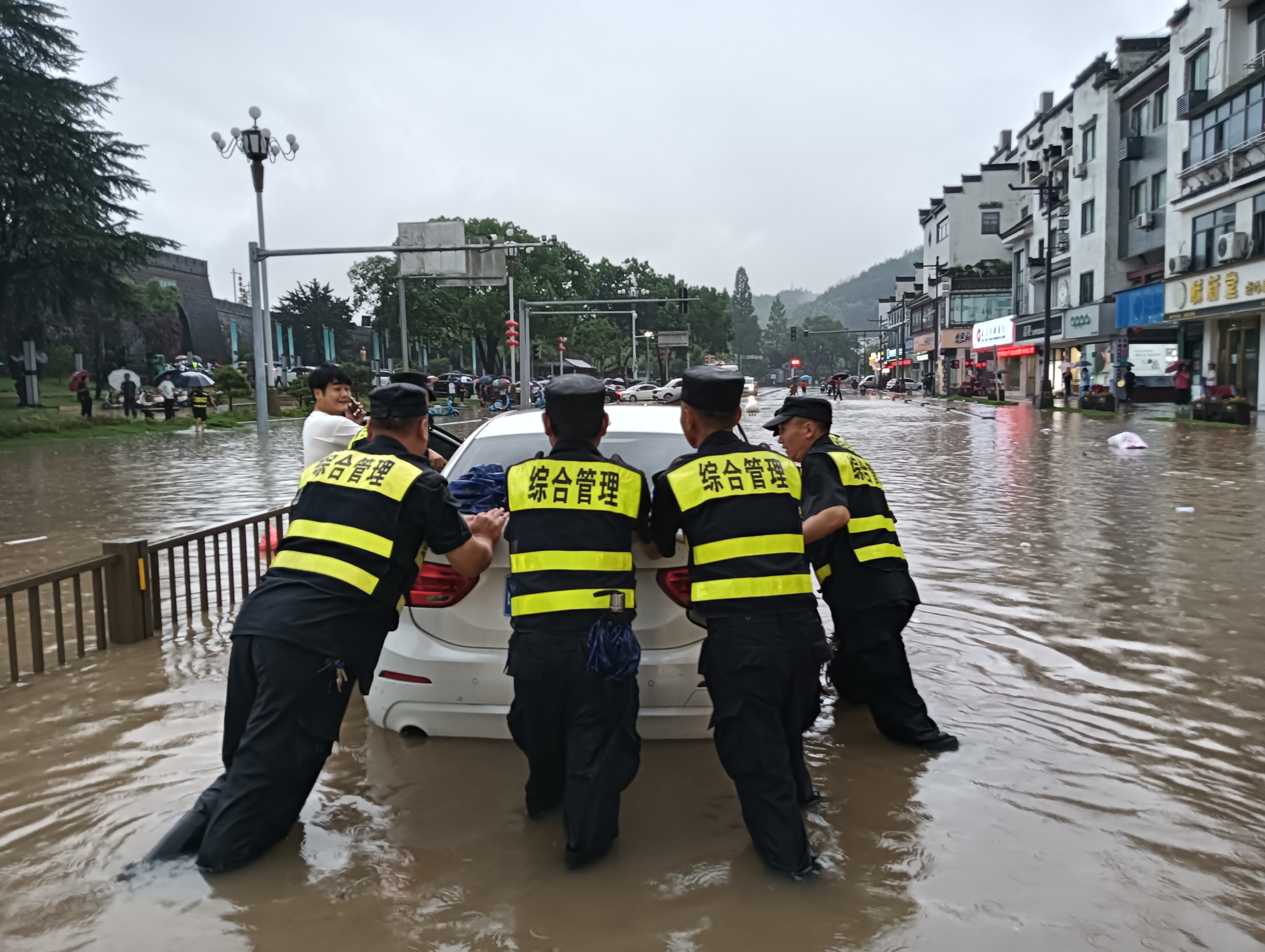 6月20日,安徽黃山市普降大暴雨,河流猛漲,山洪暴發(fā),歙縣多處路段出現(xiàn)積水,公司駐歙縣市容項目接到縣城管局抗洪救災(zāi)要求后,立即開展抗洪搶險救援。他們協(xié)助轉(zhuǎn)移受困群眾,全力清理垃圾淤泥,仔細排查隱患區(qū)域,用實際行動展現(xiàn)了公司員工的良好形象。