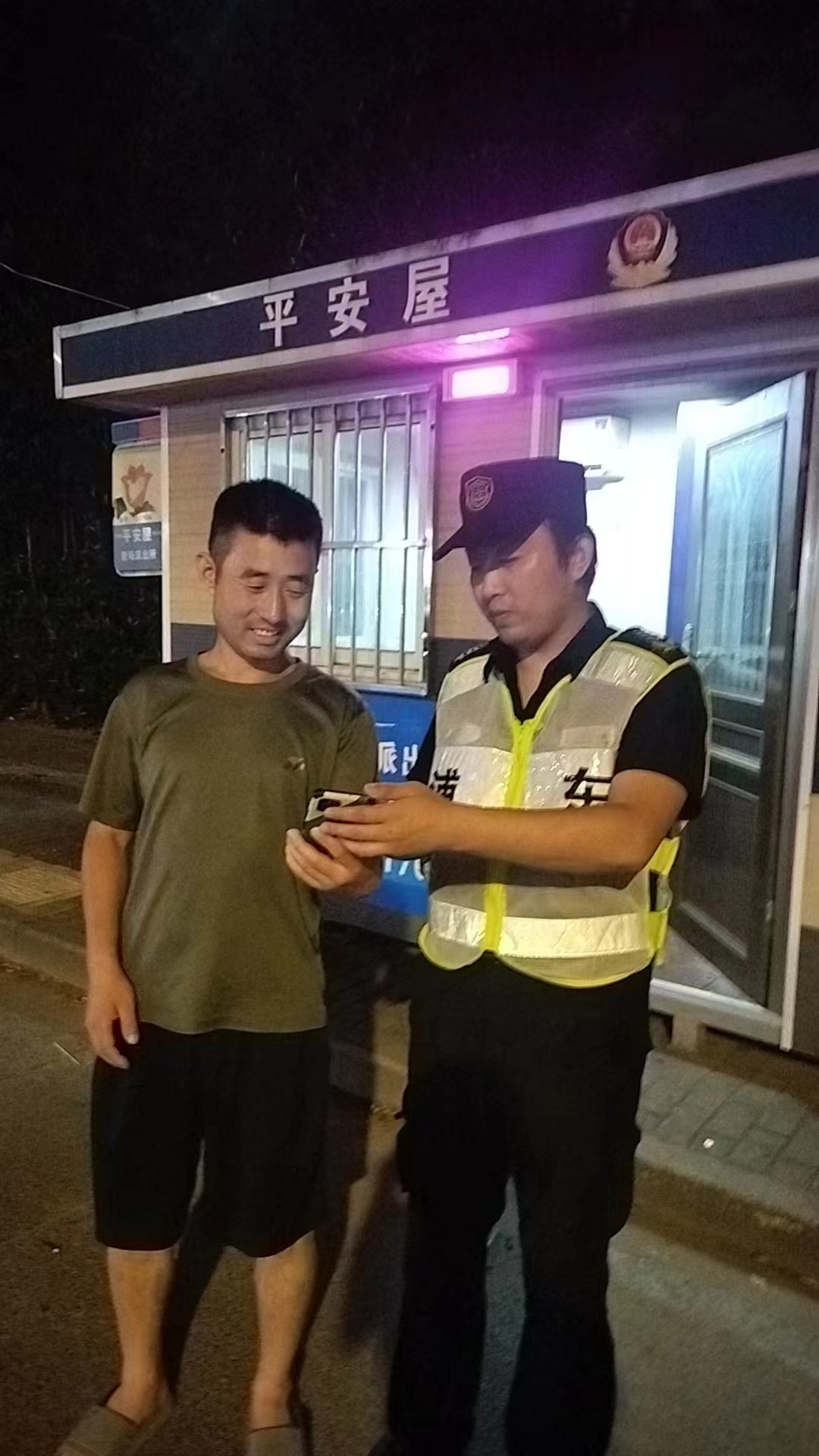大約過了20分鐘,一個男子打來電話,自稱是失主尋找手機,楊洪超聽完男子有關(guān)手機的描述后,就與他約好在巡邏崗亭碰面。