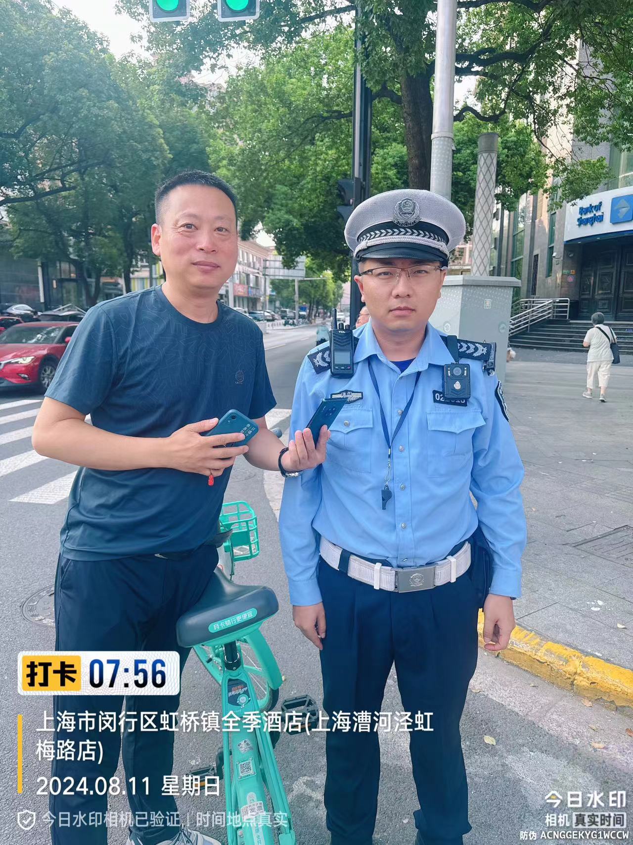 不一會兒,一位騎自行車的大哥趕過來,說路經(jīng)路口,聽到你同事提醒在吳中路虹梅路口撿到一個手機,這才發(fā)現(xiàn)自己的手機不見了,所以就急忙趕了過來。
