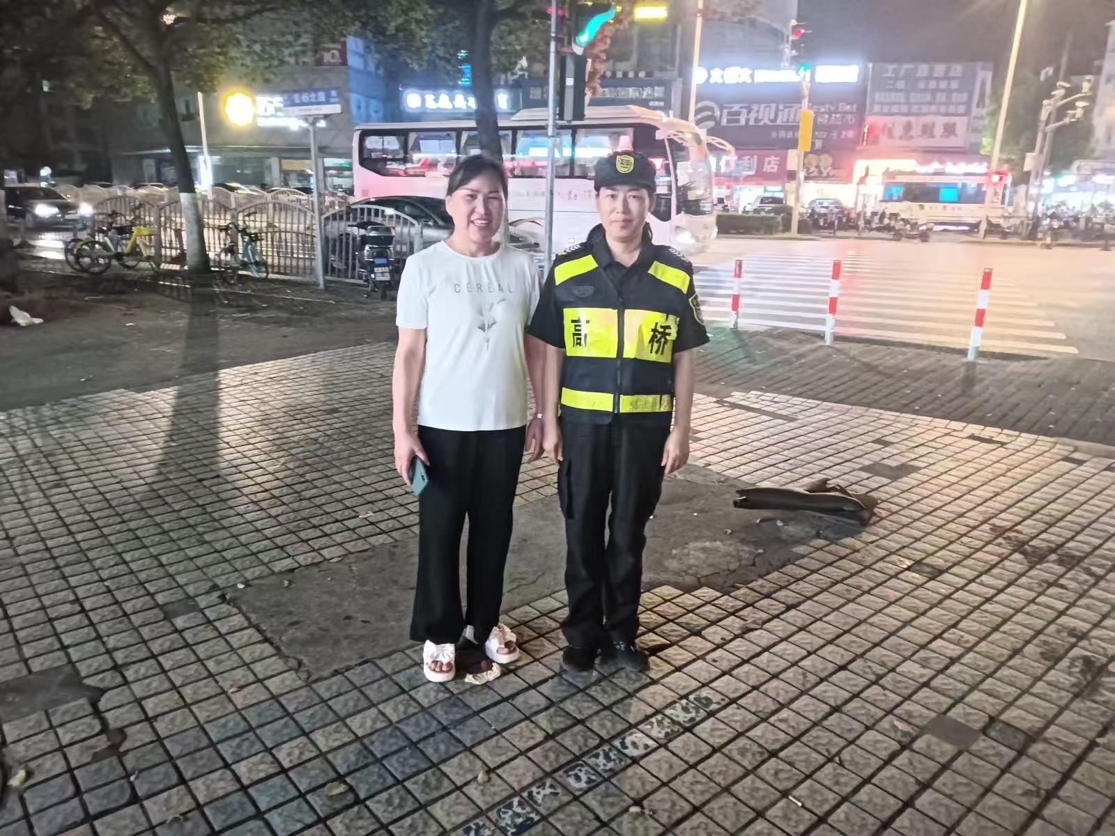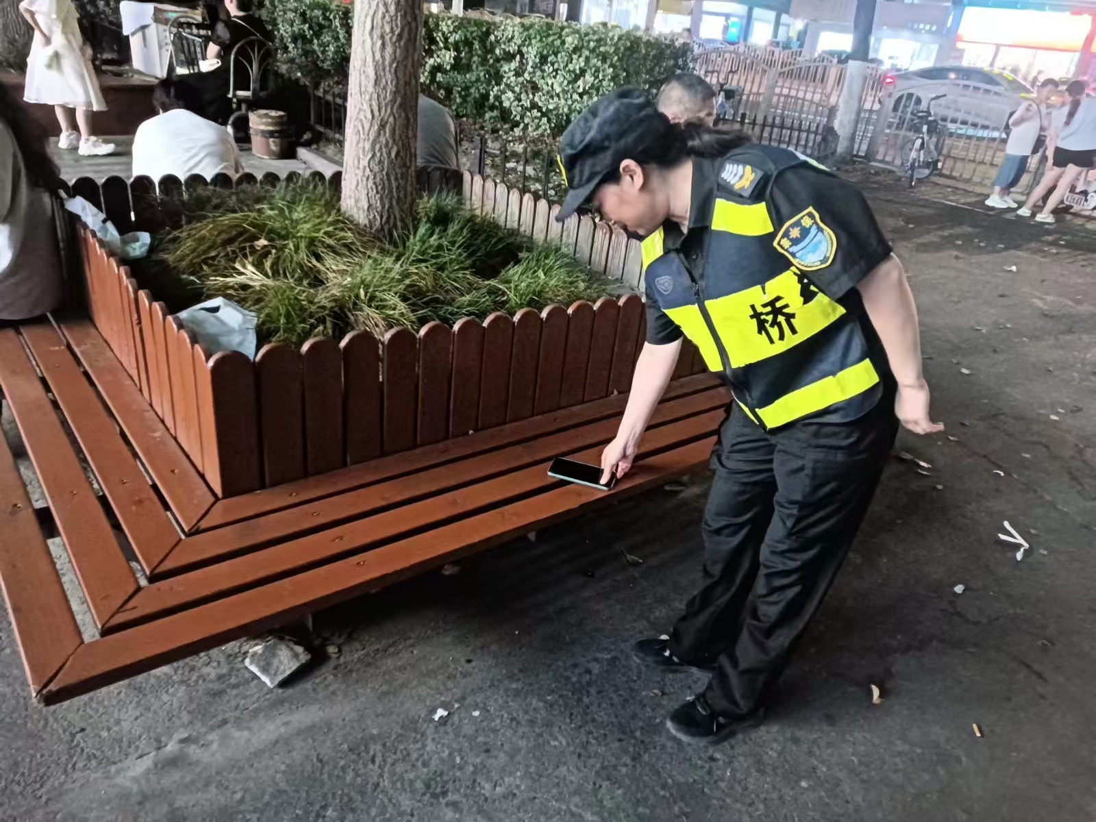 大約過了10分鐘左右,一位身穿白色短袖的女士,急匆匆地趕到現(xiàn)場,盯著地面來回細看,好像在尋找什么東西。但德琴見狀主動上前詢問,核實確認女士是失主后,就將手機交還給了她。手機失而復得,女士一再表示感謝。